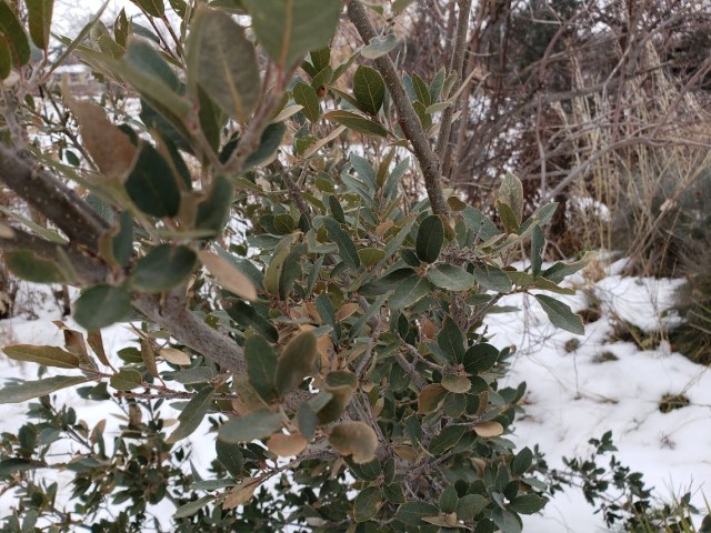 This is Quercus grisea, a gift from Allan. It’s evergreen, but not totally, here, if we get a really cold spell.