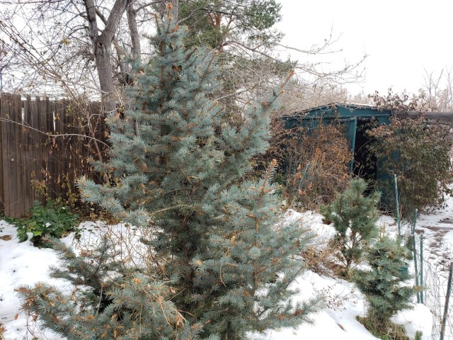 This is the first time the guy I live with has gotten a halfway decent picture of this spruce. It’s very blue. He doesn’t know how large it’s going to be.
