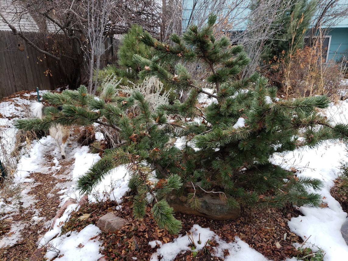 This is the dwarf Pinus aristata he got from Jerry Morris. It’s been growing kind of this way and that, so has been pruned.