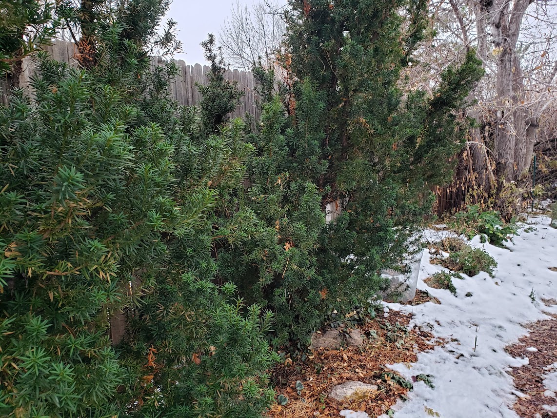 Thanks. The guy I live with said you can sometimes see yews around Denver, though not too many. The ones you get at nurseries definitely need to be repotted into larger pots, with the rootball surrounded by very coarse sand or something similar (not “play sand”) and watered for a month or so, so that the roots grow out of the rootball (the “super genius” method), at which point they can be planted in the garden.