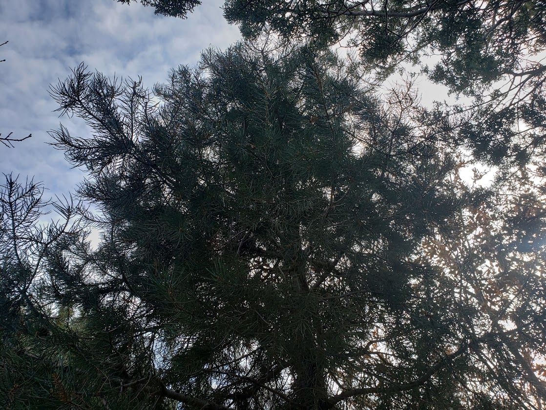 “Kind of amazing stuff”, he said, and then talked about how he was going to rake it up and take it into the back garden, but that (to use more of those igh words) might not be the brightest idea, since he’s read that having all this leaf litter aids in drought resistance for dryland plants like the pine.