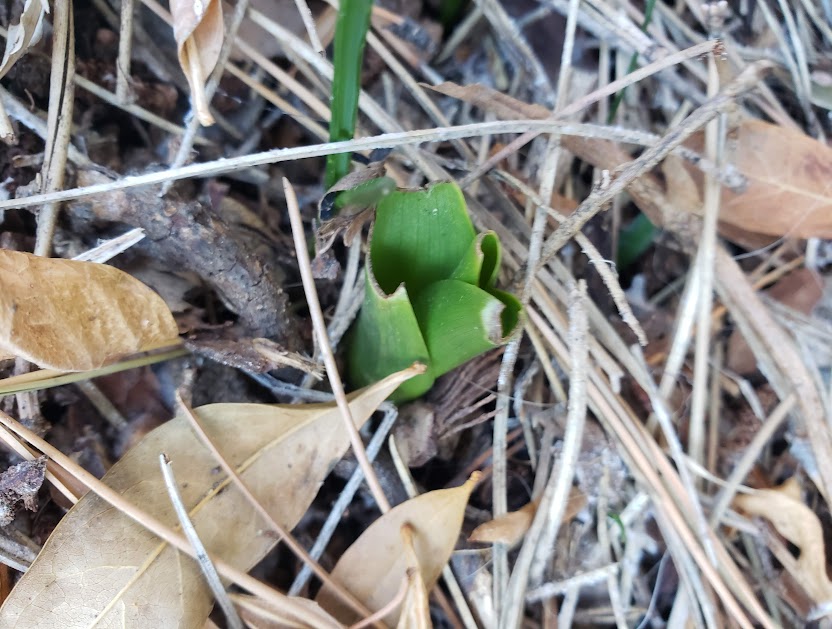 There is thick leaf mold in the shade garden, but that’s a watered garden, and the garden in the front yard isn’t, so this came as a real surprise.