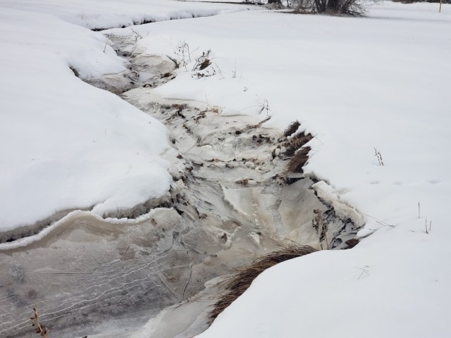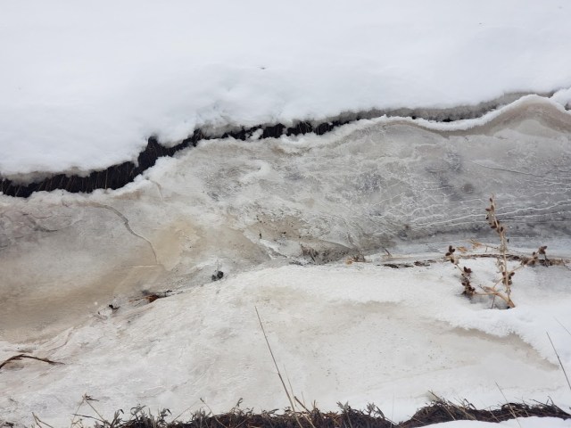 We’ve never seen the creek look like this before. Maybe because it rained and there was water in the creek and then ice, which has now collapsed into the creek bed.