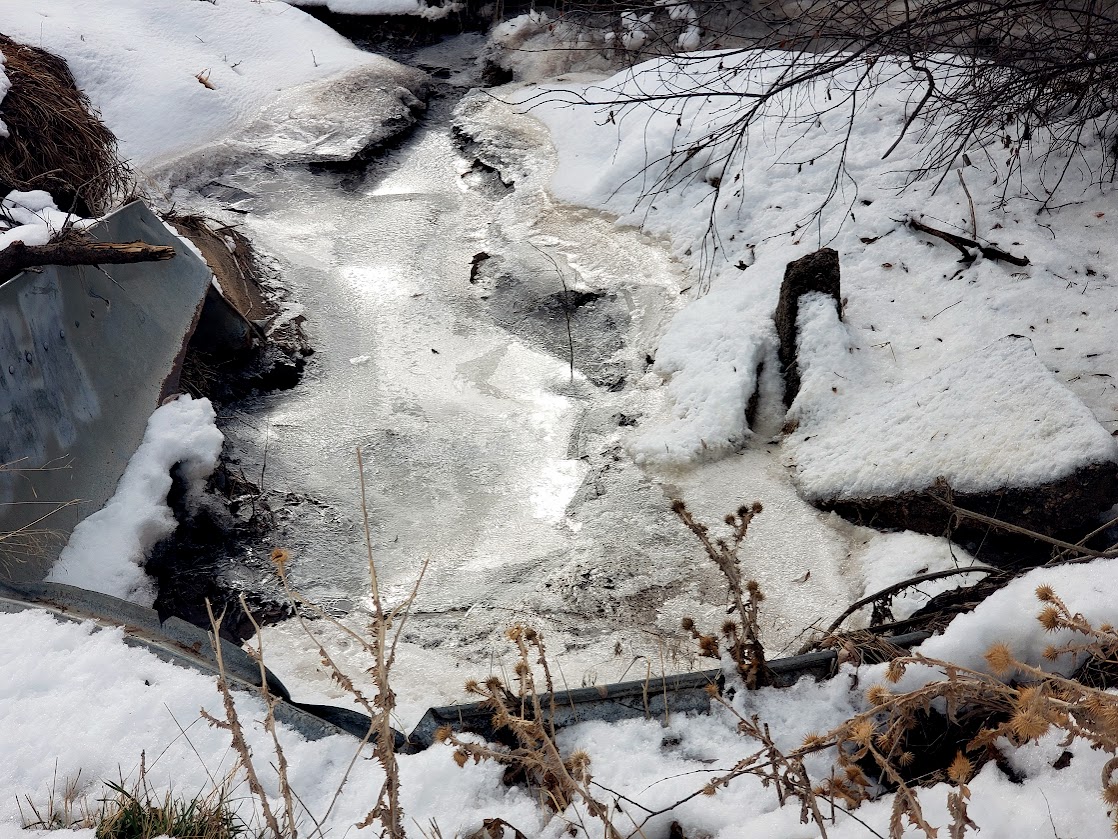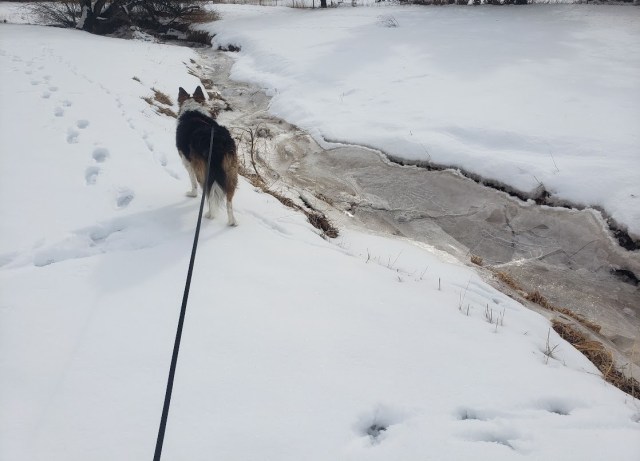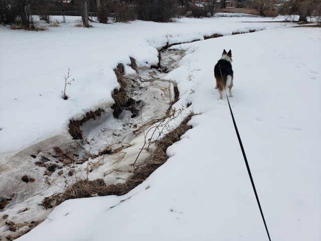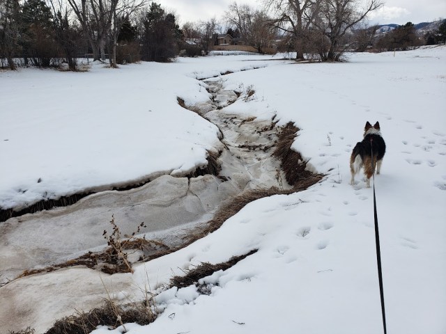 Thanks. I went down into the creek, but the ice made weird noises when I walked on it, so I climbed back out.