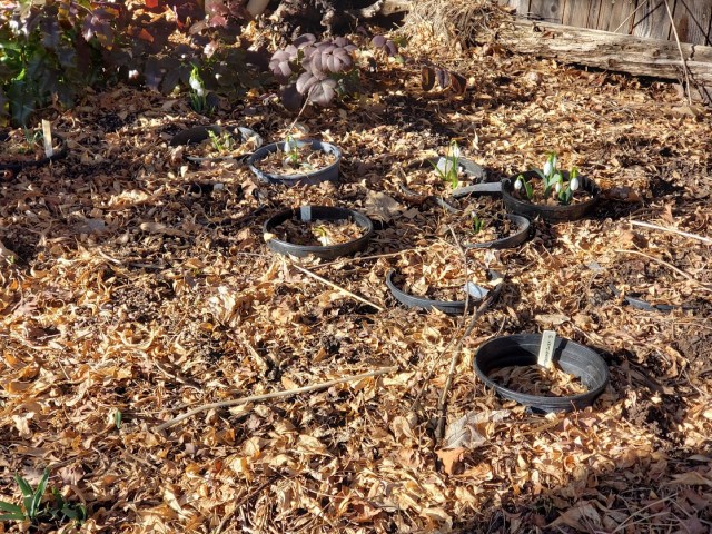 Yes, the pots are kind of ugly, but you can’t see the pond baskets with some of the snowdrops. I hear that this year everything will be redone, and all the fancy snowdrops will be planted in pond baskets.