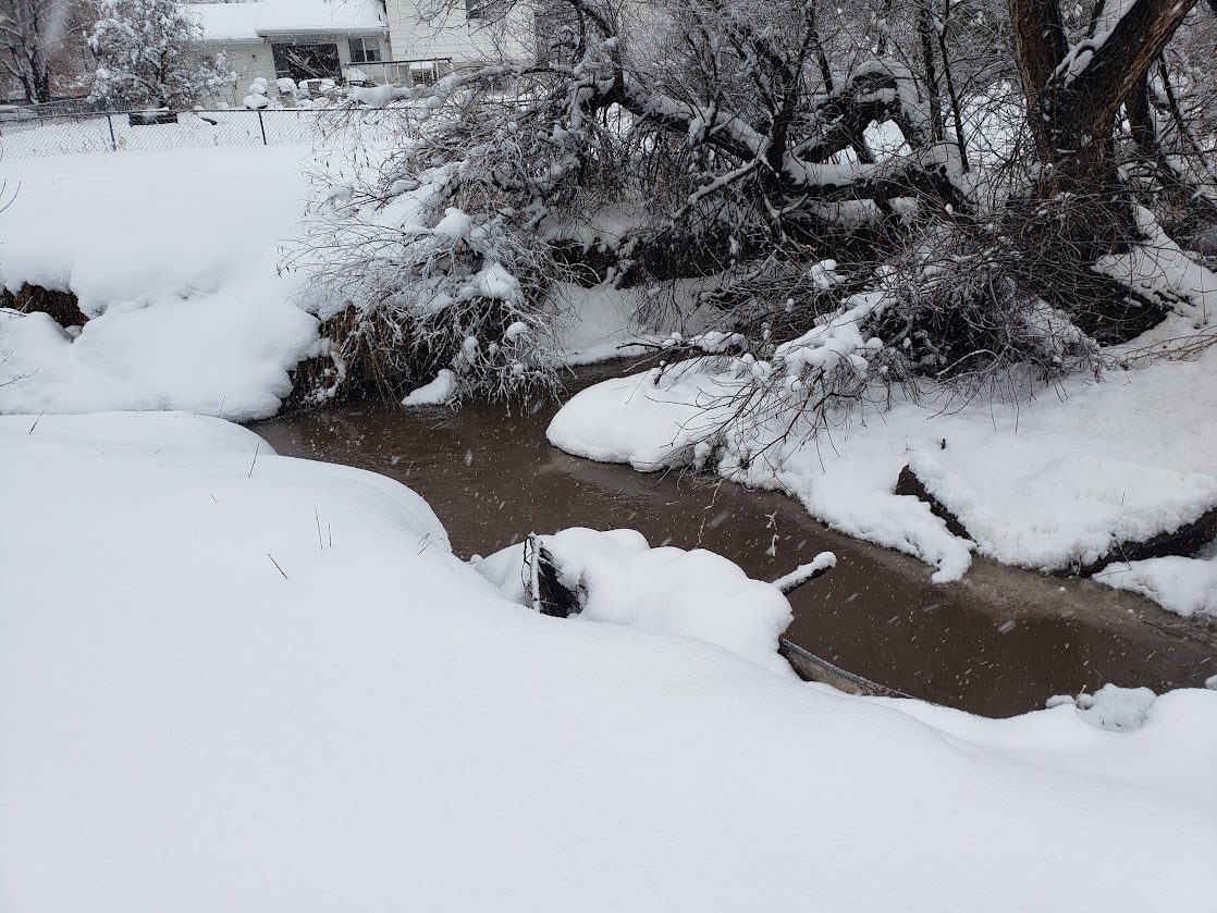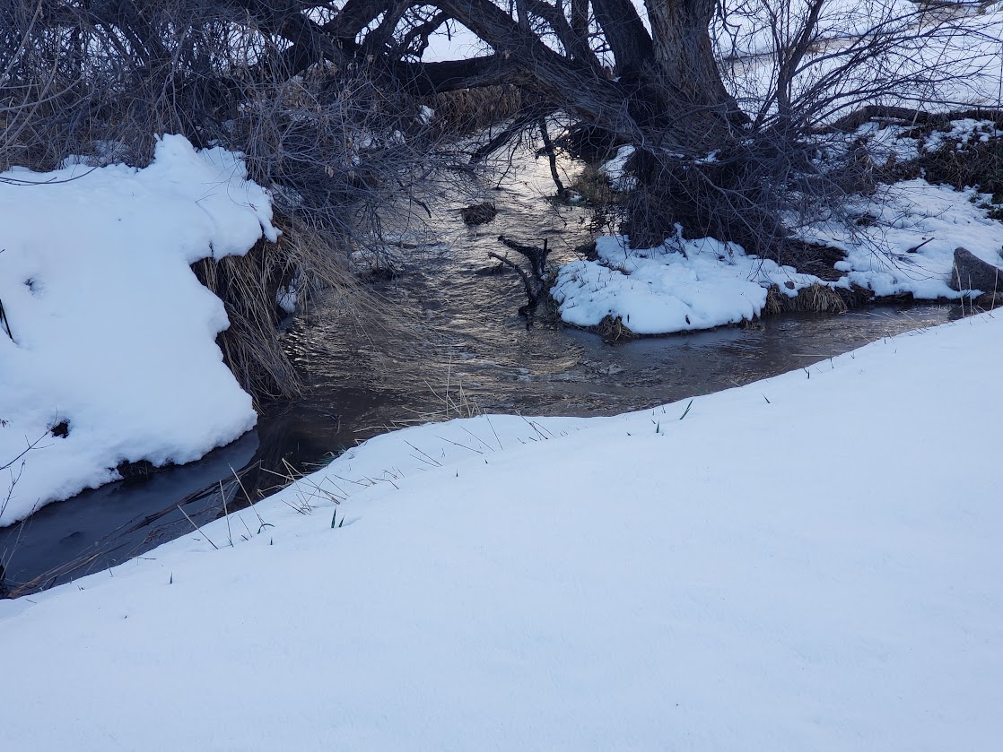 Yesterday there was a lot of water in the creek. It’s not very cold outside and so the snow is mostly slush.