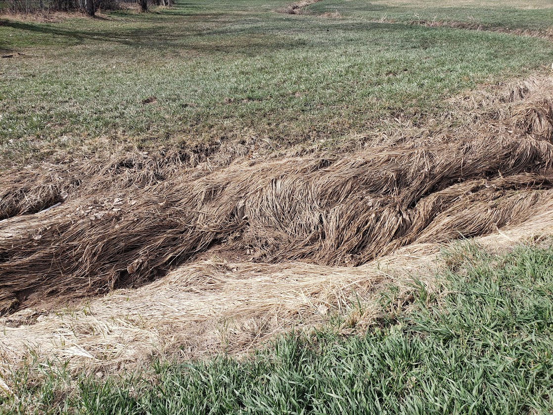 You can see that the grass in the field is turning green now. This is right behind out garden, and there’s been no grass here for a couple of years, but it all came back, the way grass does.