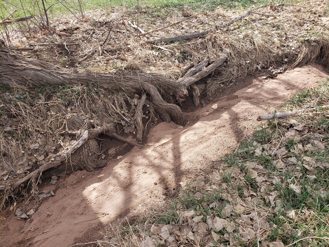 Farther southwest, the sides of the creek aren’t as open as you see; there are a lot of willows along the banks. I would think the sand would get caught in the willows.