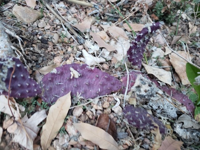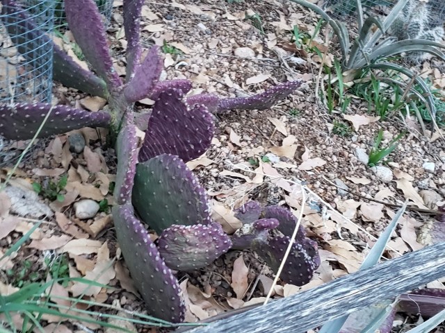 The purple-padded cactus are starting to turn green.