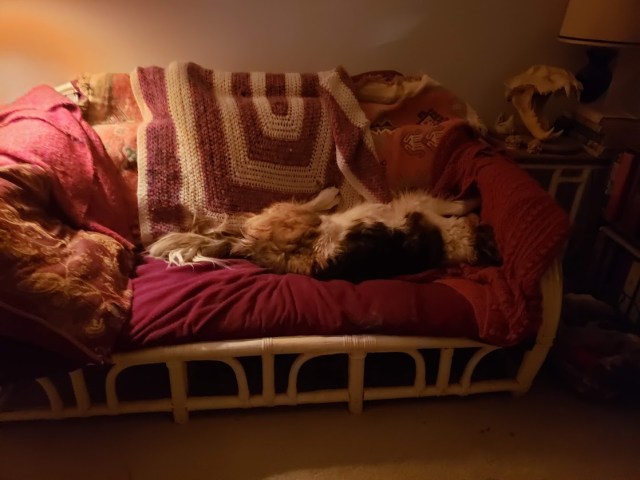 Thanks. The couch is old and very creaky, but unbelievably comfy.