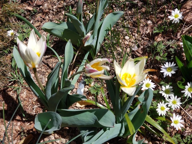 You look utterly exhausted after your busy day. Tulipa ‘Ugan’ is gorgeous. Have never seen this one before. Wonder if all the sand in the creek is due to erosion from somewhere further up it’s course? My guilty secret is I go and sweep up all the fine gravel on the road in the Spring before the street sweepers come through. I do rinse it all very well before applying it as a mulch in rockeries. The county uses beet juice instead of salt on the roads so it’s pretty safe for this purpose.
