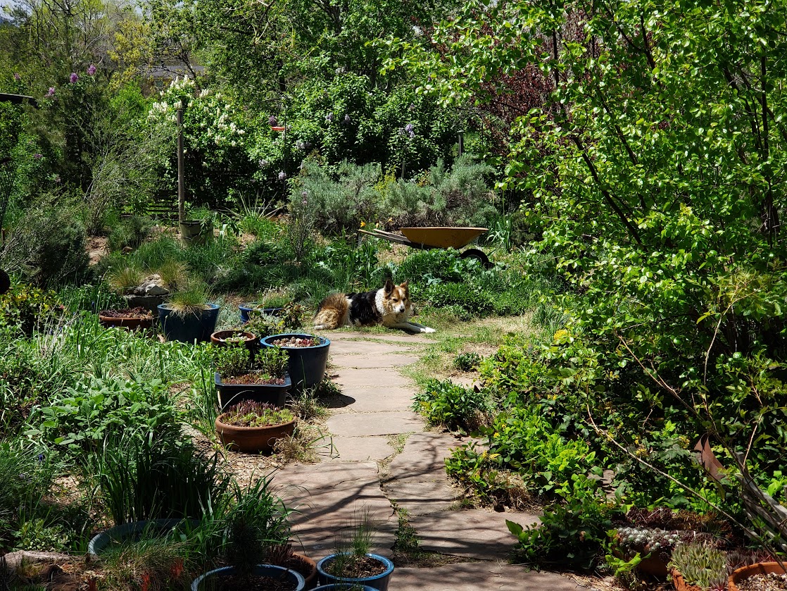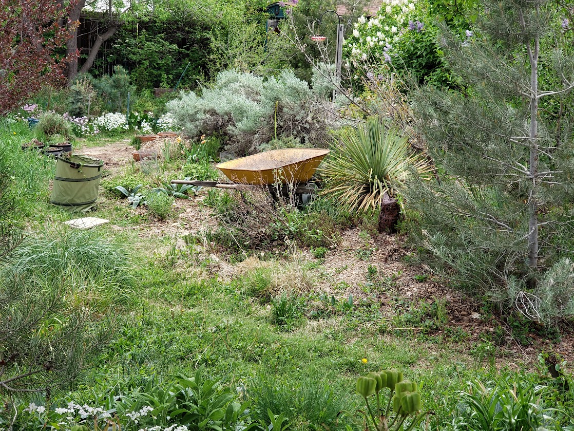 All kinds of things have seeded into that path, where the bag and kneeling pad are, and he got tired of looking at it. The path will be gravel, like most of the other paths here.
