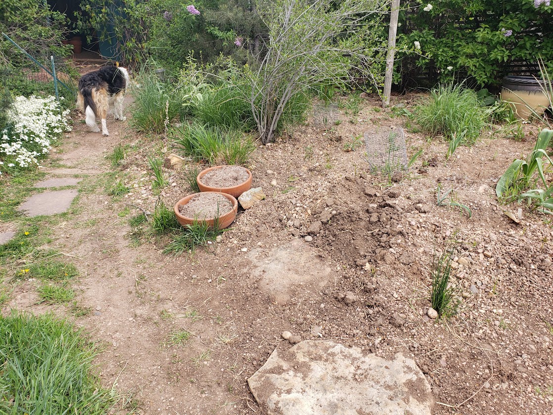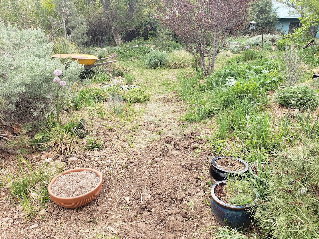 The north-south, or maybe it’s south-north, path is being redone. The guy I live with hated to remove so much buffalo grass, because seed is now super-expensive, but there were so many other grasses that had seeded themselves into the path he’s decided to redo the whole thing.