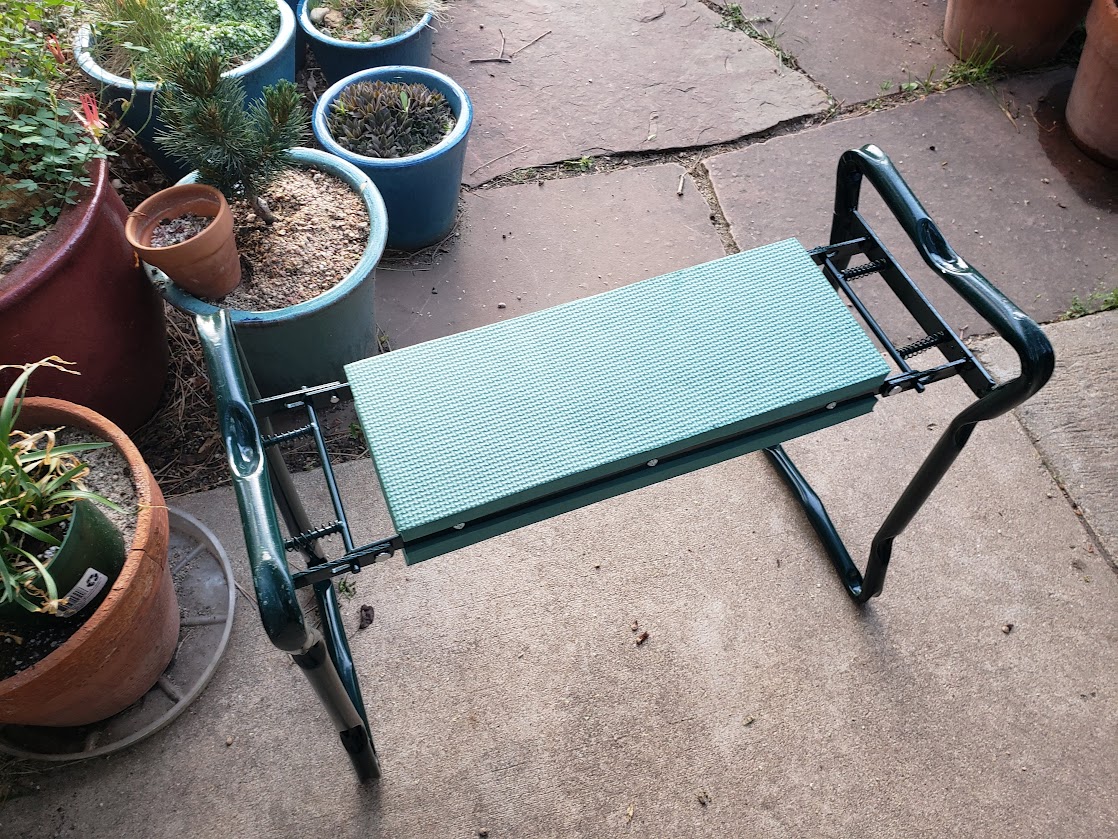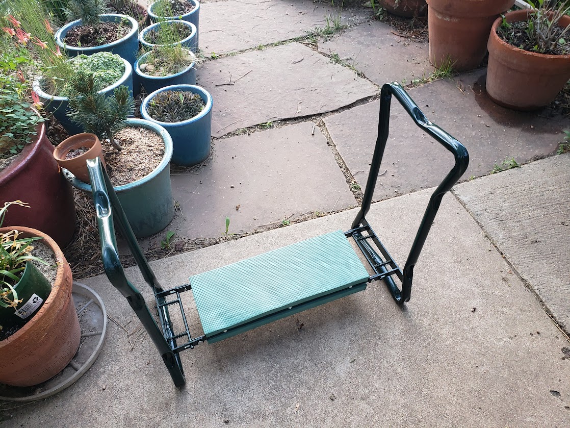 He ordered a gardening bench, or kneeler, from Garden Talk. He says it’s totally excellent and he could get up very easily after doing some weeding. He’d thought about getting one of these for a while, because even before his knees starting hurting it wasn’t always that easy for him to get up after weeding.