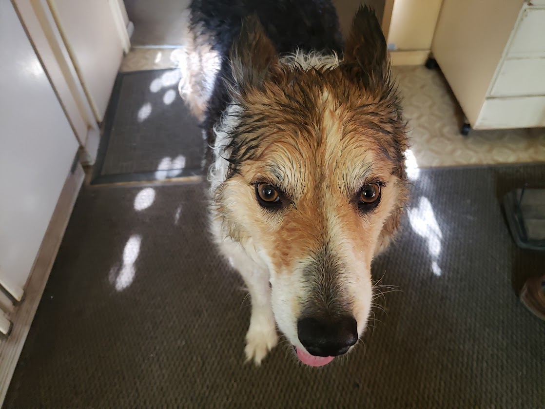 The guy I live with soaked me with the hose yesterday. We purebred border collies don’t like hot weather at all. Fortunately it doesn’t get roastingly hot every single day from June to September, here.