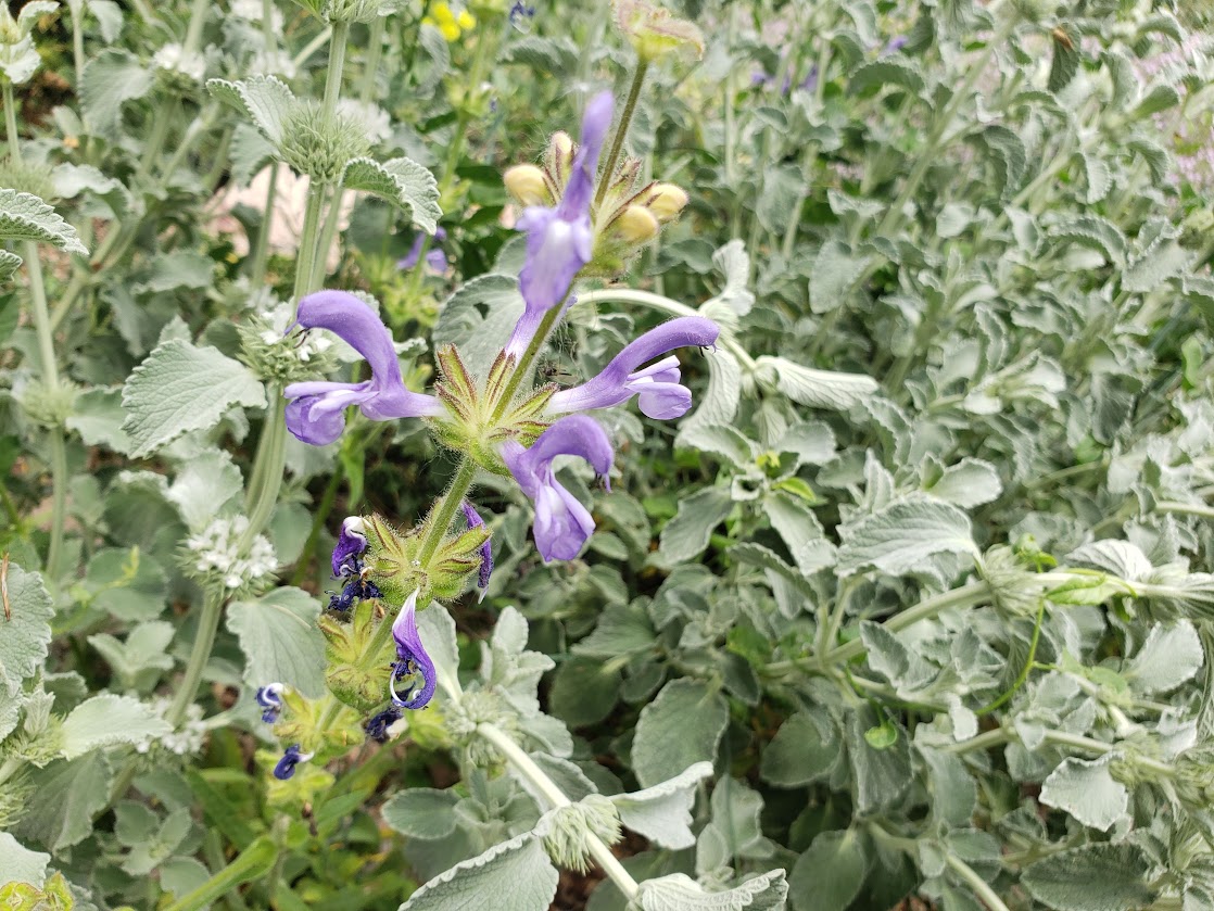 Salvia hypargeia, flowering in a sea of Marrubium incanum: