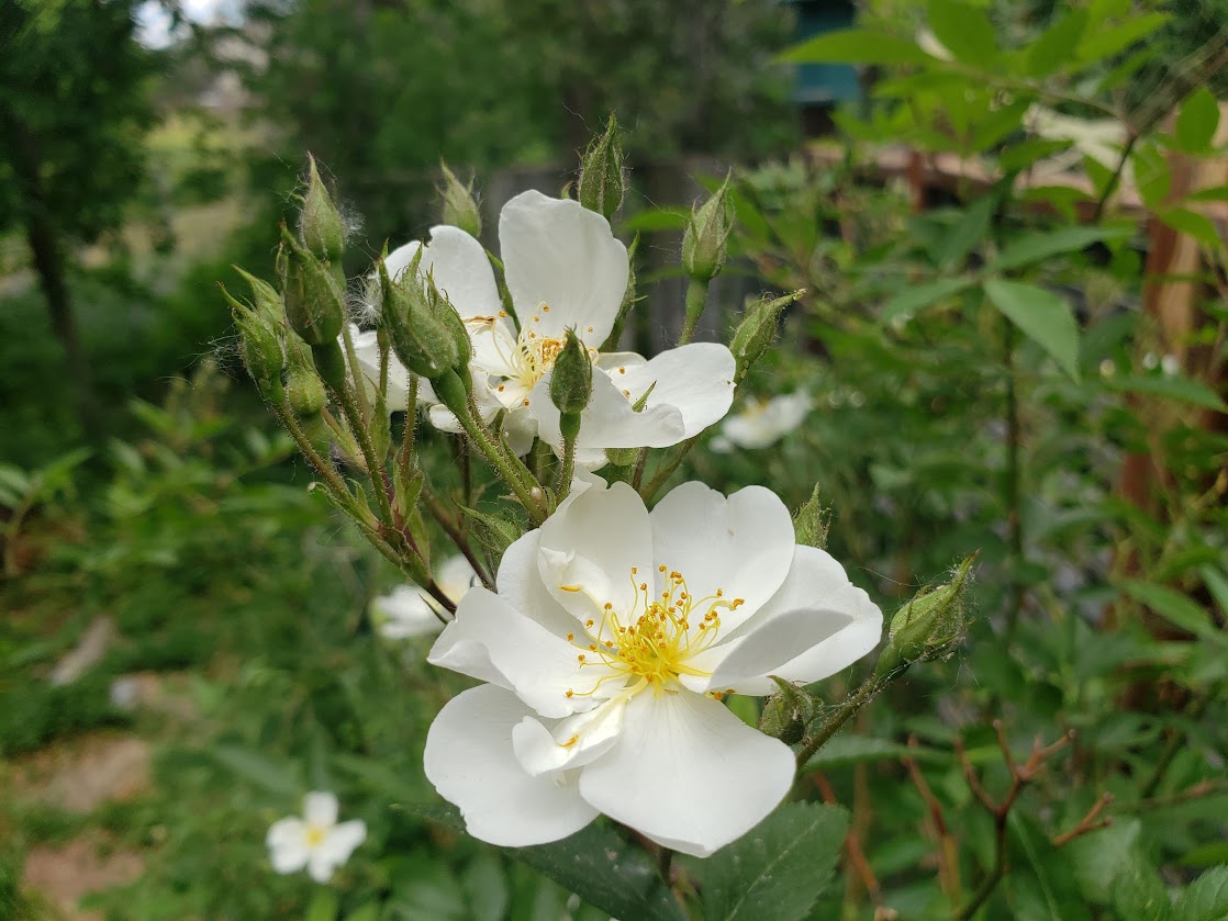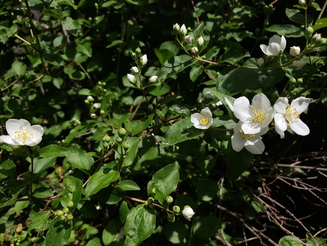 In the garden on the south side of the house, Philadelphus lewisii has started to flower.