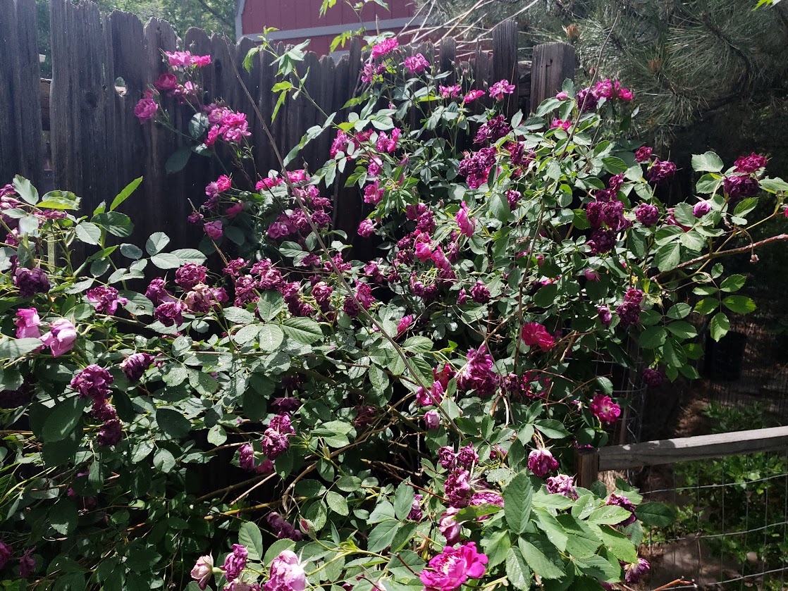 This is the rose ‘Veilchenblau’, almost done flowering.