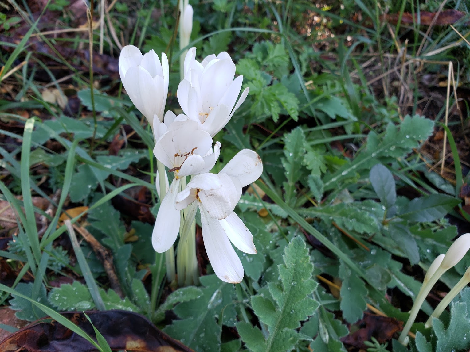 There are a lot of colchicums in flower, though they were mostly knocked over by the rain.