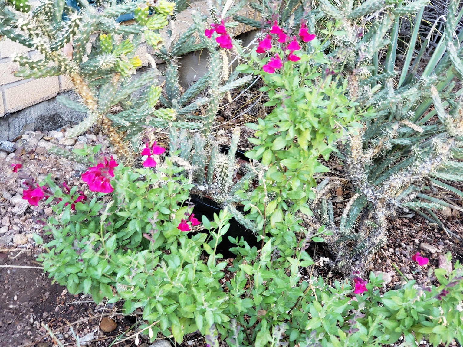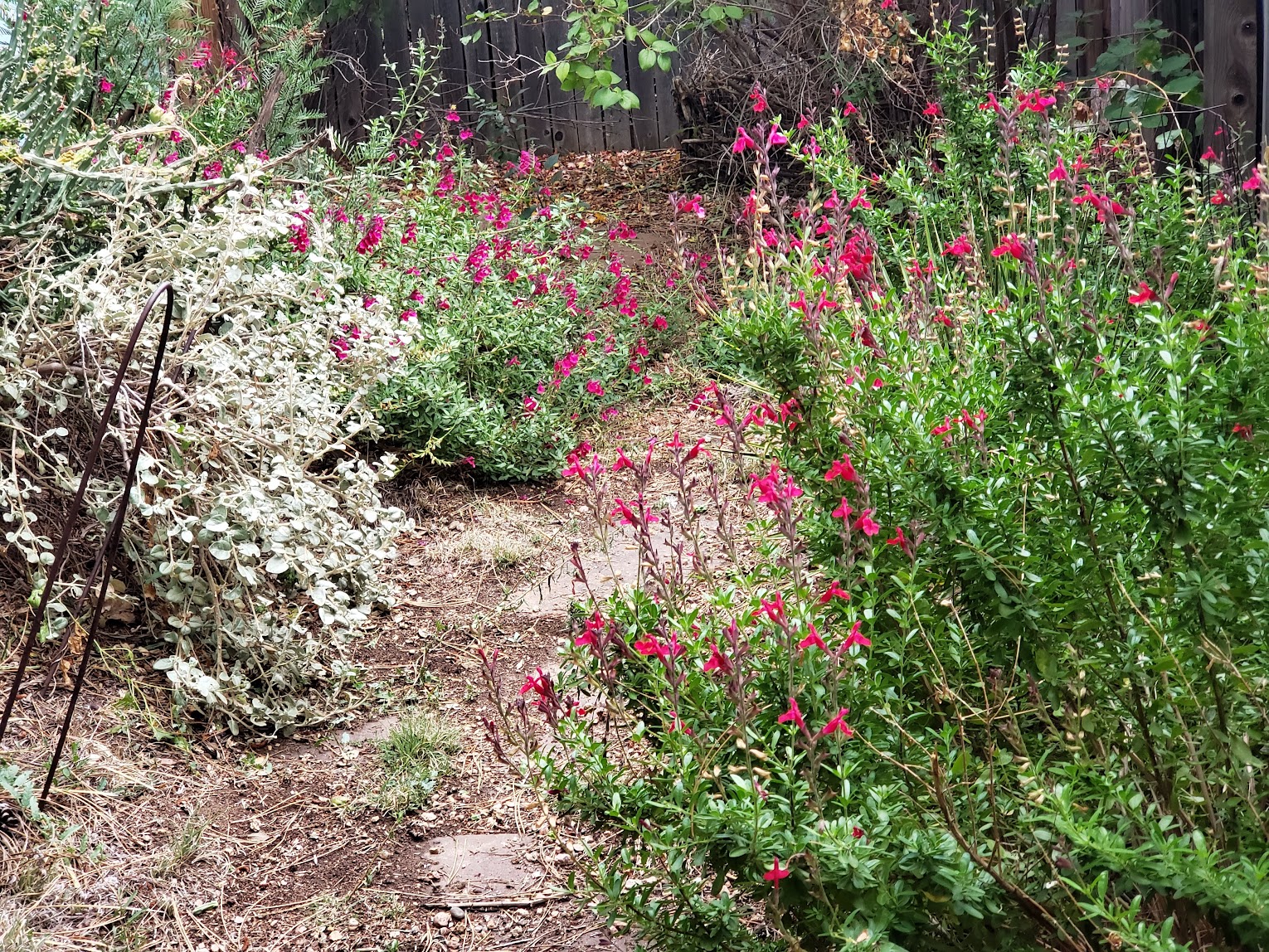 The big buffet for hummingbirds is in the south garden, with Salvia greggii.