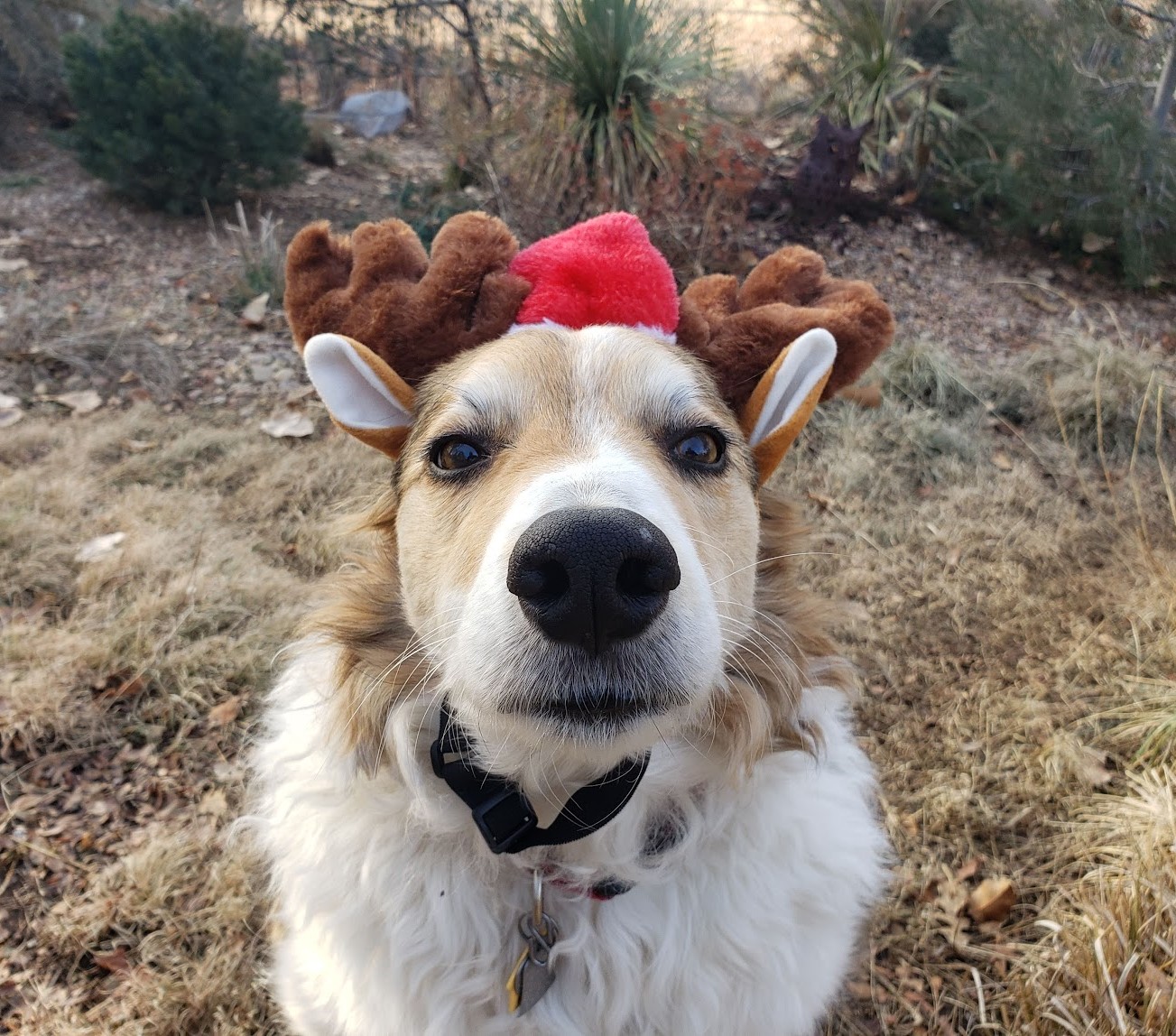 Merry Christmas, mighty brave, fierce and tolerant dog! You deserve major snacks for your posing. Does the guy you live with know about Brie?