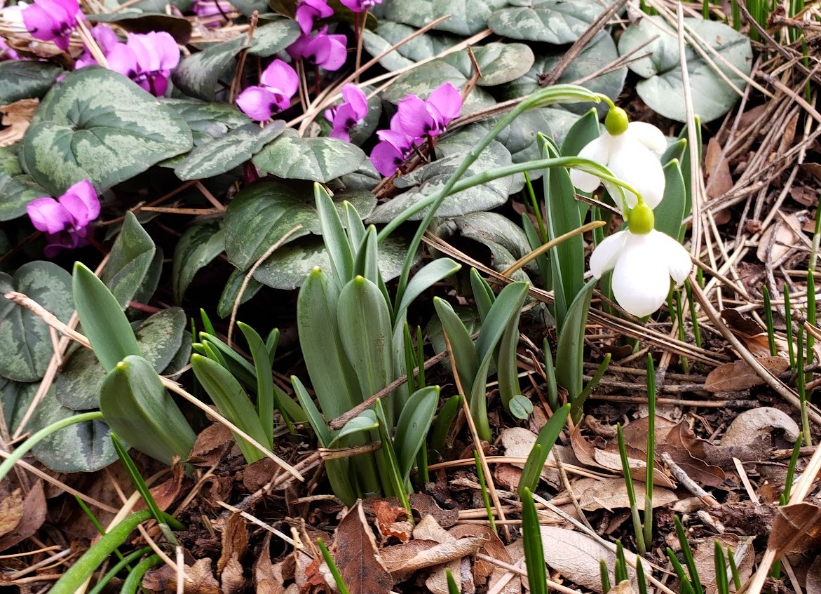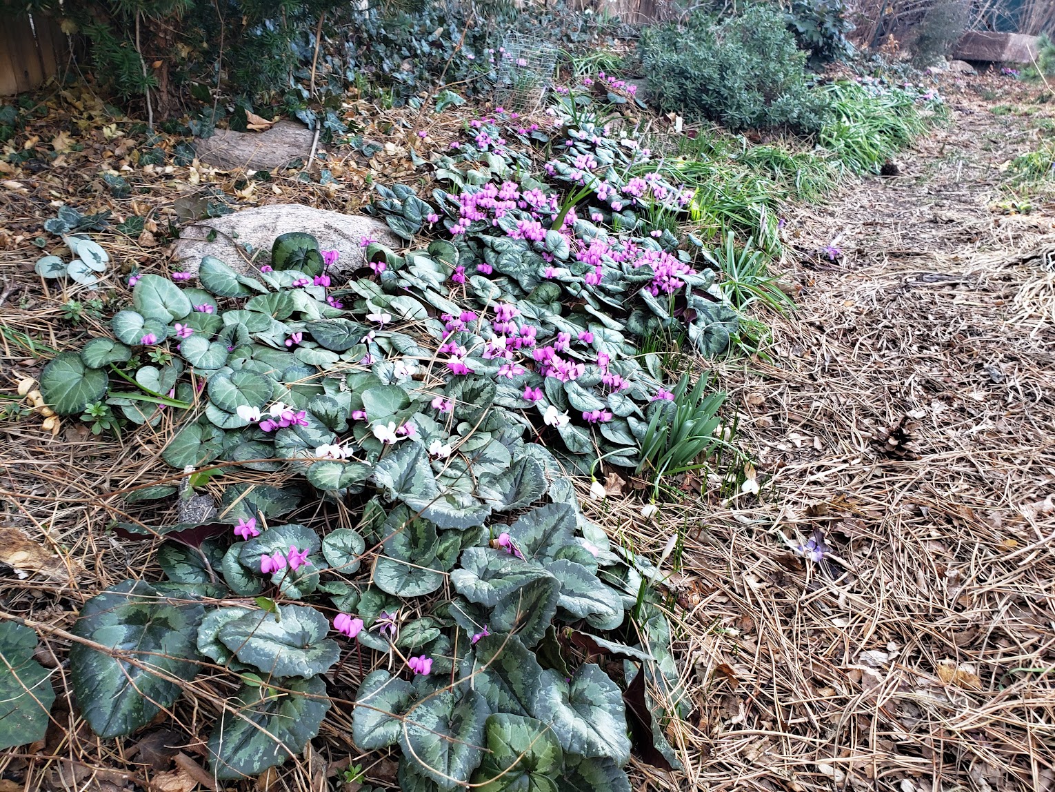 The guy I live with says Cyclamen hederifolium has way more attractive leaf forms that C. coum does.There are a lot of the former here, but not in this picture.