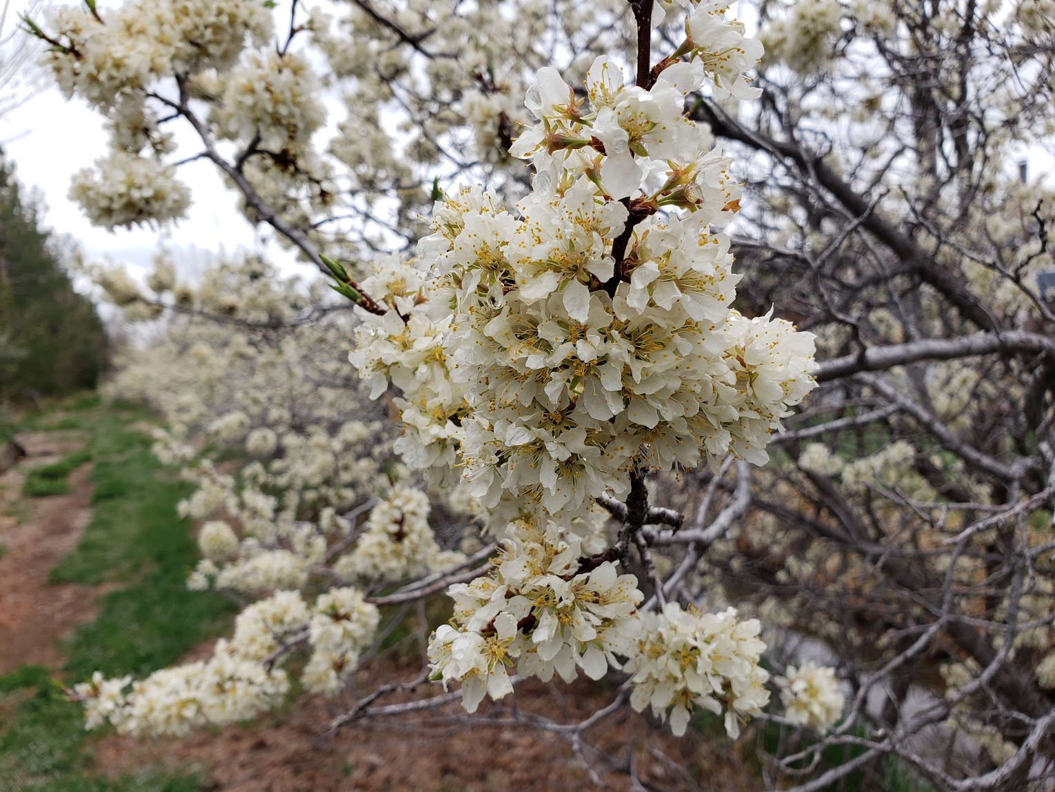 One or two years ago the wild plums got some weird fungus or something and there was no fruit at all. The snow tomorrow may possible spoil the chances for a big plum crop this year, but the guy I live with said the snow is a fair trade.