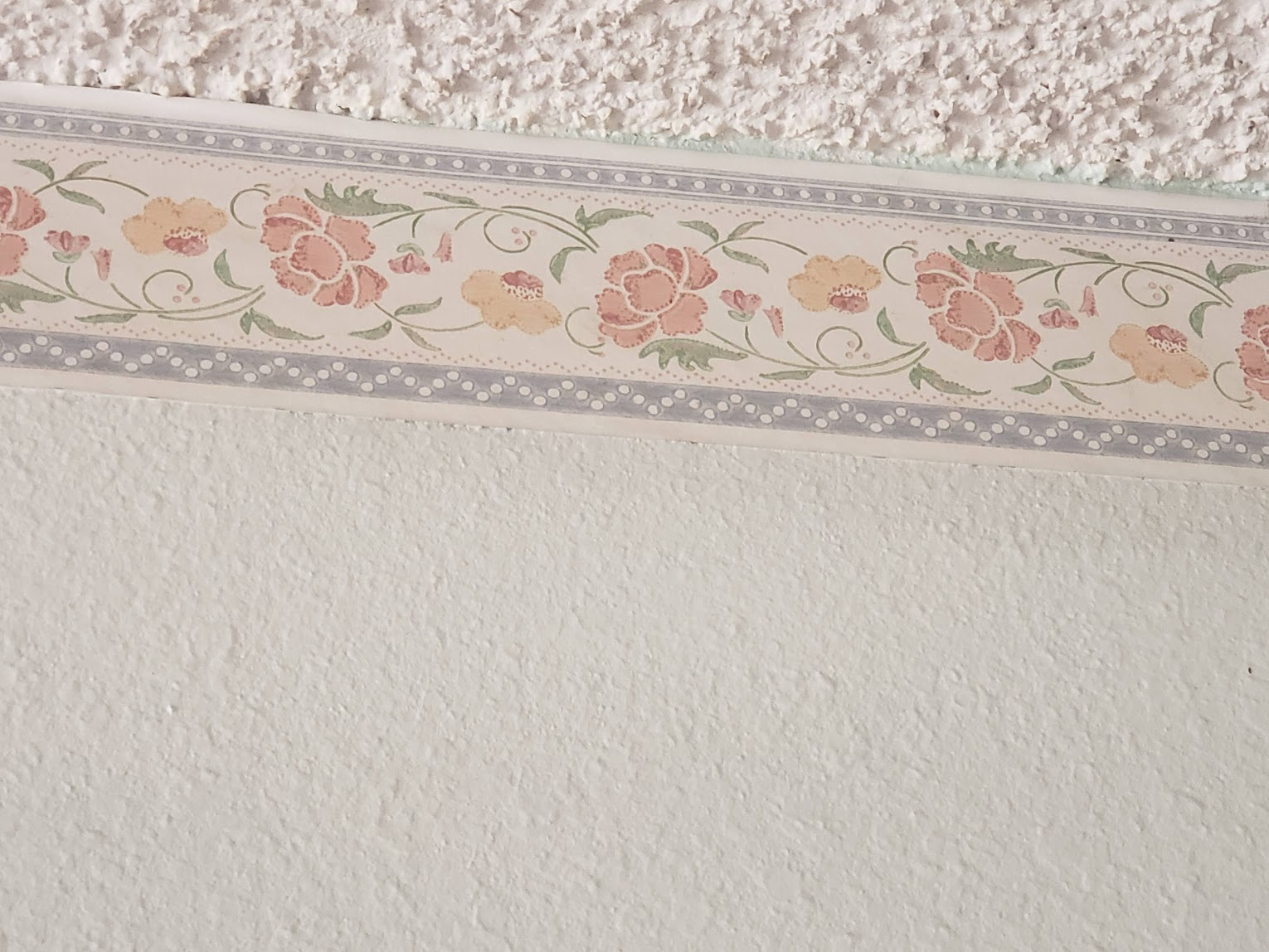 Look what he has to deal with. His wife put this strip at the top of the walls, and you can see that the last time the guy I live with didn’t get any paint on the strip. He thinks his aging, arthritic hands are still steady enough not to get paint on the strip (and he’s using something called “Frog Tape” to mask the strip, but still…).