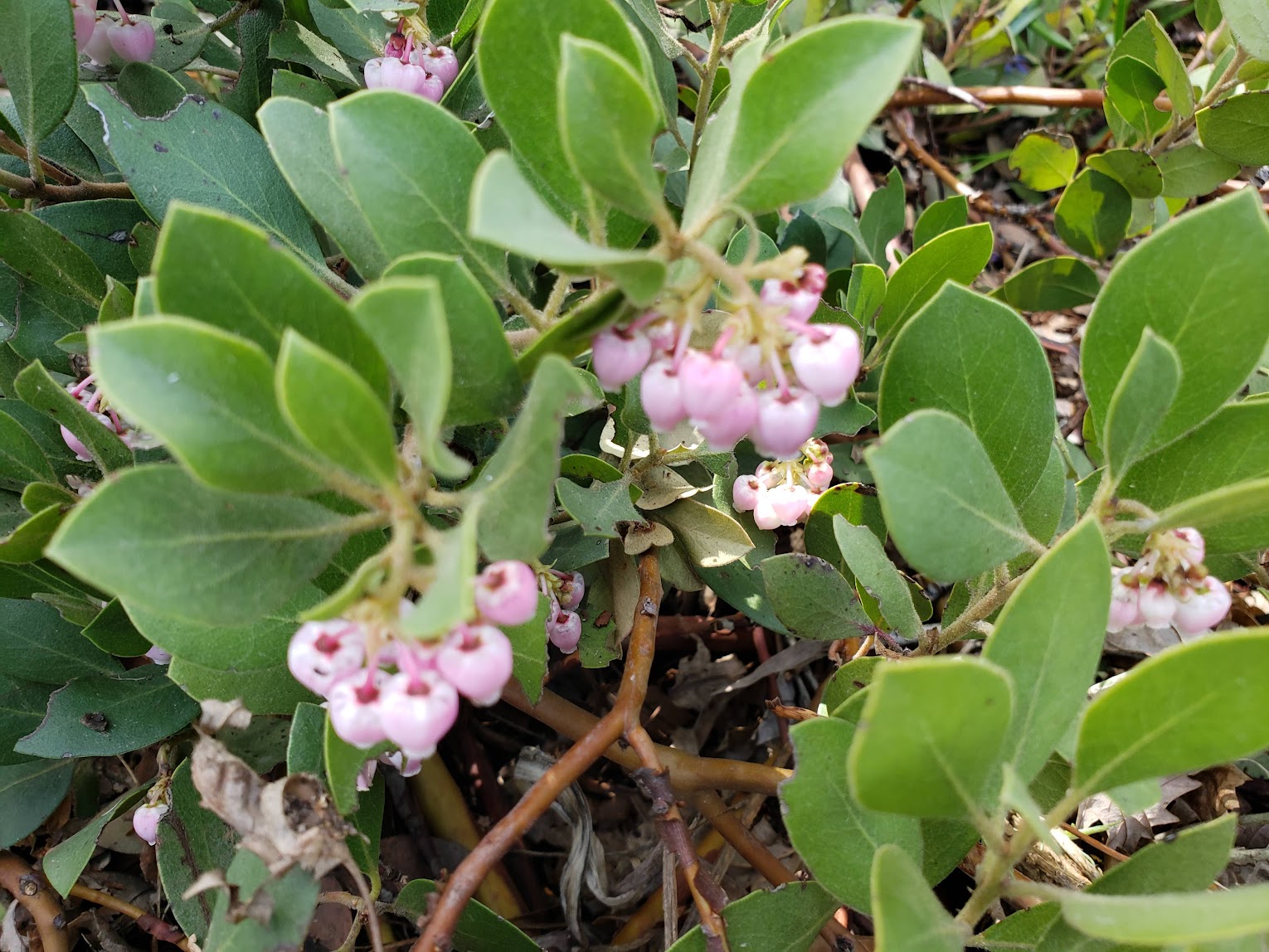 Things are happening in the garden. One of the manzanitas (this is a low-growing one in the front yard) is flowering.
