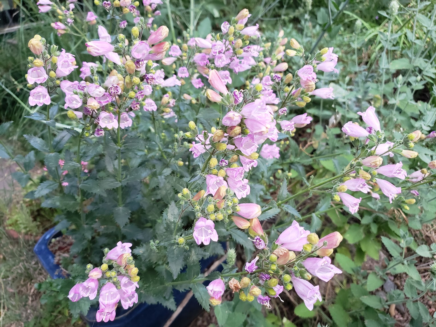 The penstemon sowed itself in this pot several years ago; the plants in the garden died.