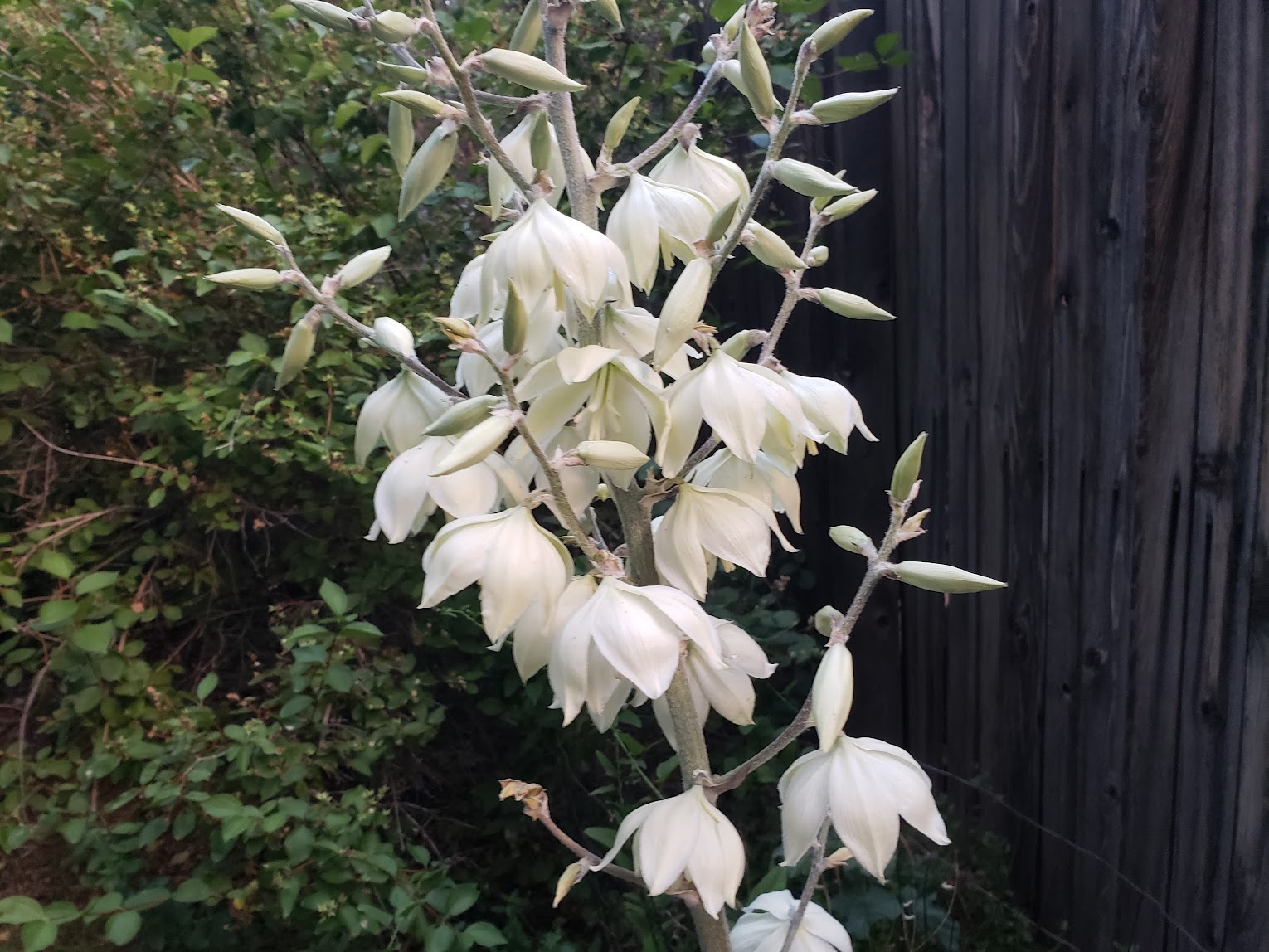 We got a tiny amount of rain yesterday but the guy I live with said that golfball-sized hail fell in the park just across the highway. Only a mile or two away. That would have spoiled the yucca flowers.