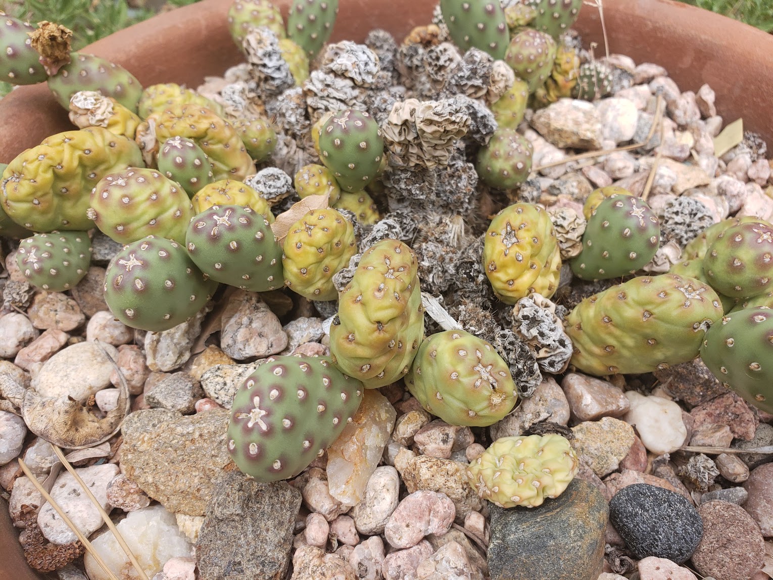The guy I live with says little cacti are especially suited to be grown in containers so they don’t get stepped on in the garden, or where Opuntia fragilis is concerned, so you don’t have a joint clinging to your shoes after you brush past it.