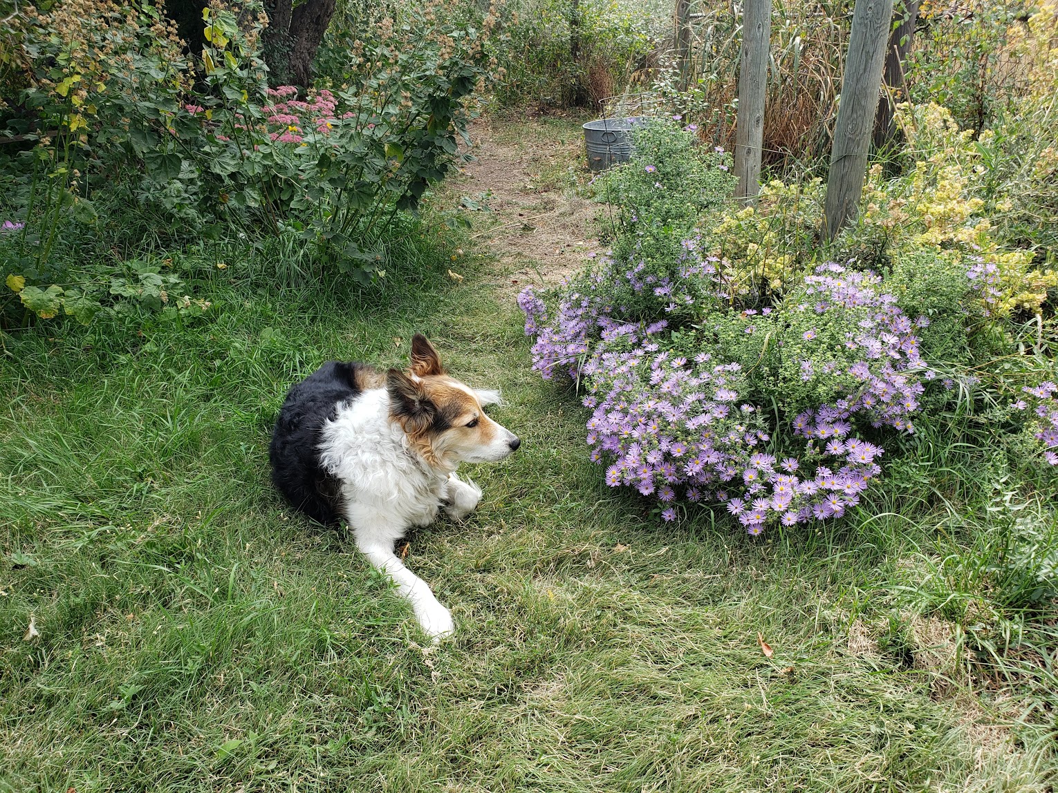 Greetings and salutations, everyone; yes, once again it is I, Mani the purebred border collie, filling in for the guy I live with, and here today to talk about the weather, and about colchicums. You may remember me from such posts as “The Kitchen Cricket”, among so many, many others.