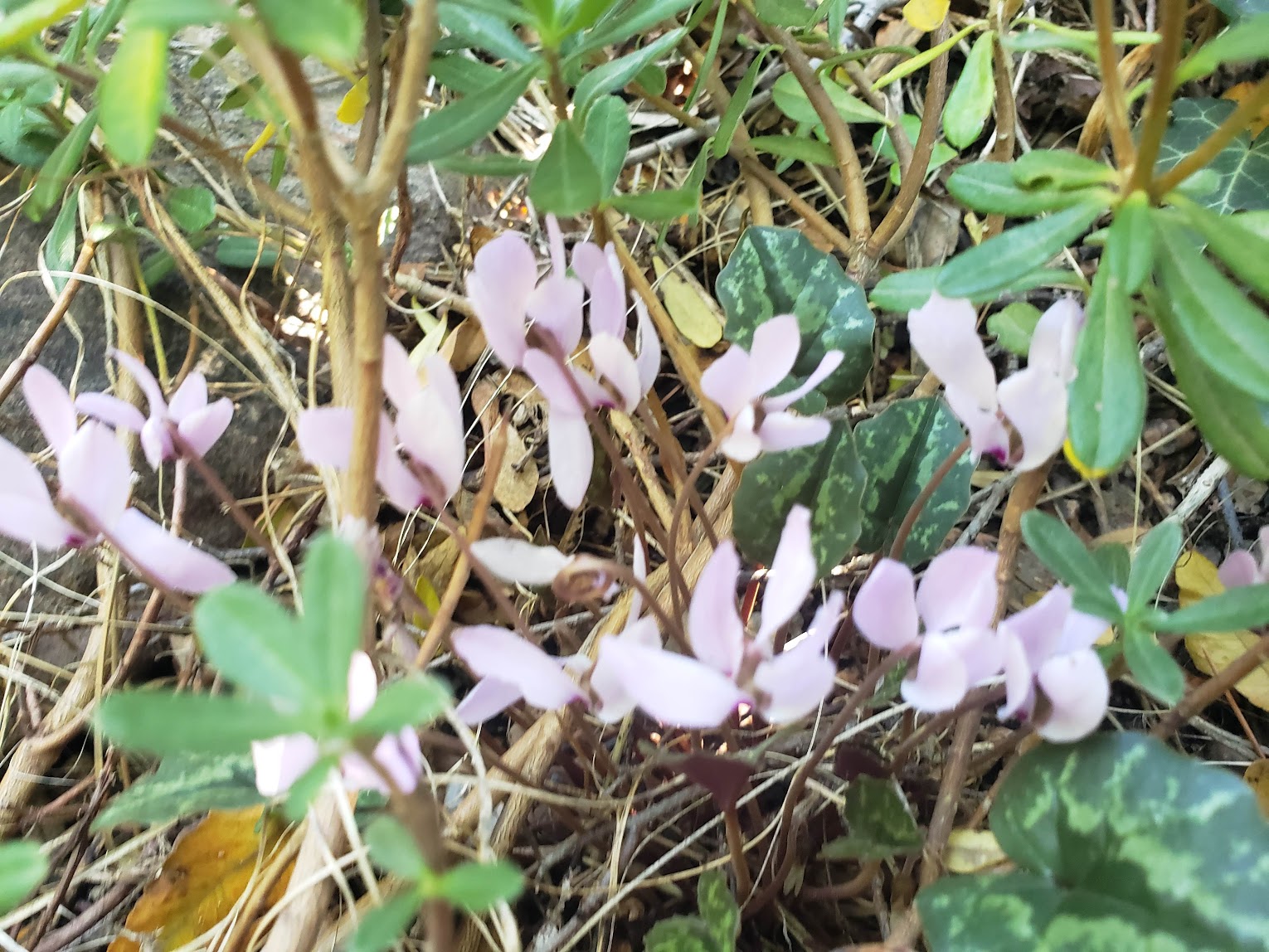 This is a terrible picture of Cyclamen cilicium which he discovered was flowering under a daphne.