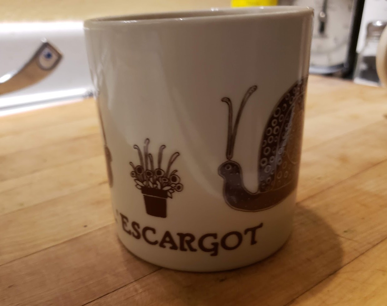 He grew up there and remembers snails. He said he remembers escargots en brioche at a French restaurant here but that’s about as snaily as we get here. He does have a shell of a Roman snail which a friend of his wife sent her from England.