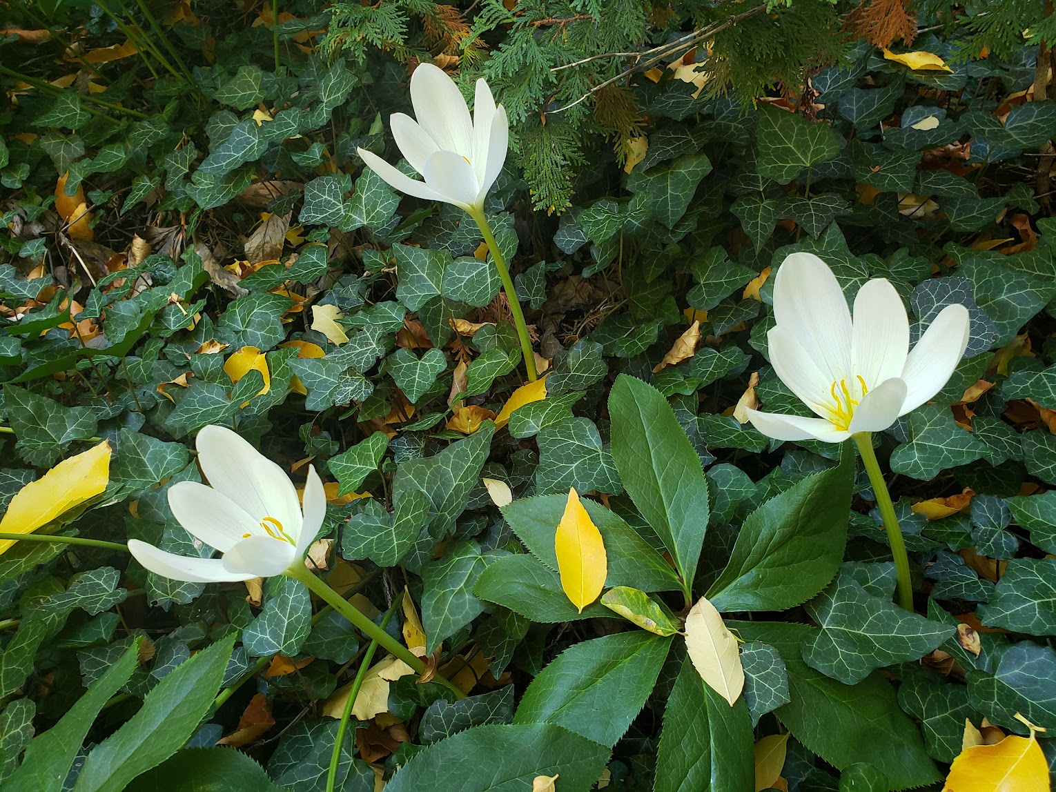 Naturally, he had to take pictures of the white colchicum again, Colchicum speciosum ‘Album’.