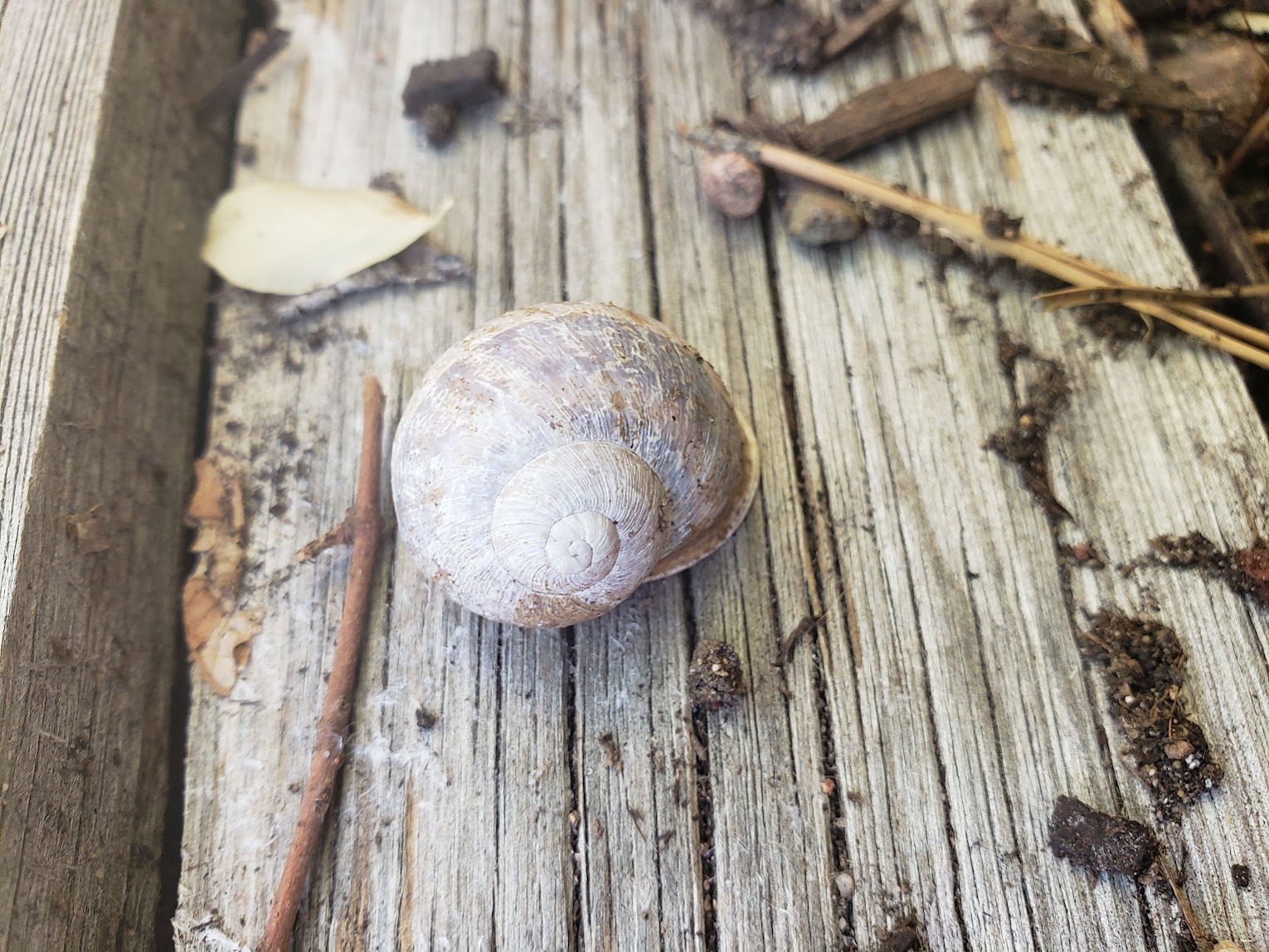 He said this was a “snail shell”, but that the snail was gone. He said this could be an old shell back from the time when snails came into the garden from nursery pots.