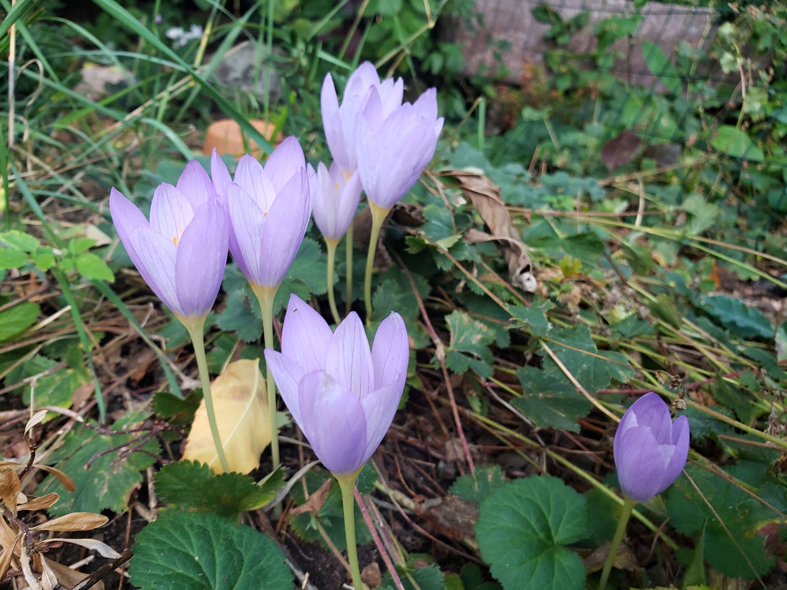 He said the reason why there are only three flowers, one per corm, is that the colchicums probably didn’t like the very dry summer we had. These corms were planted about 1995.