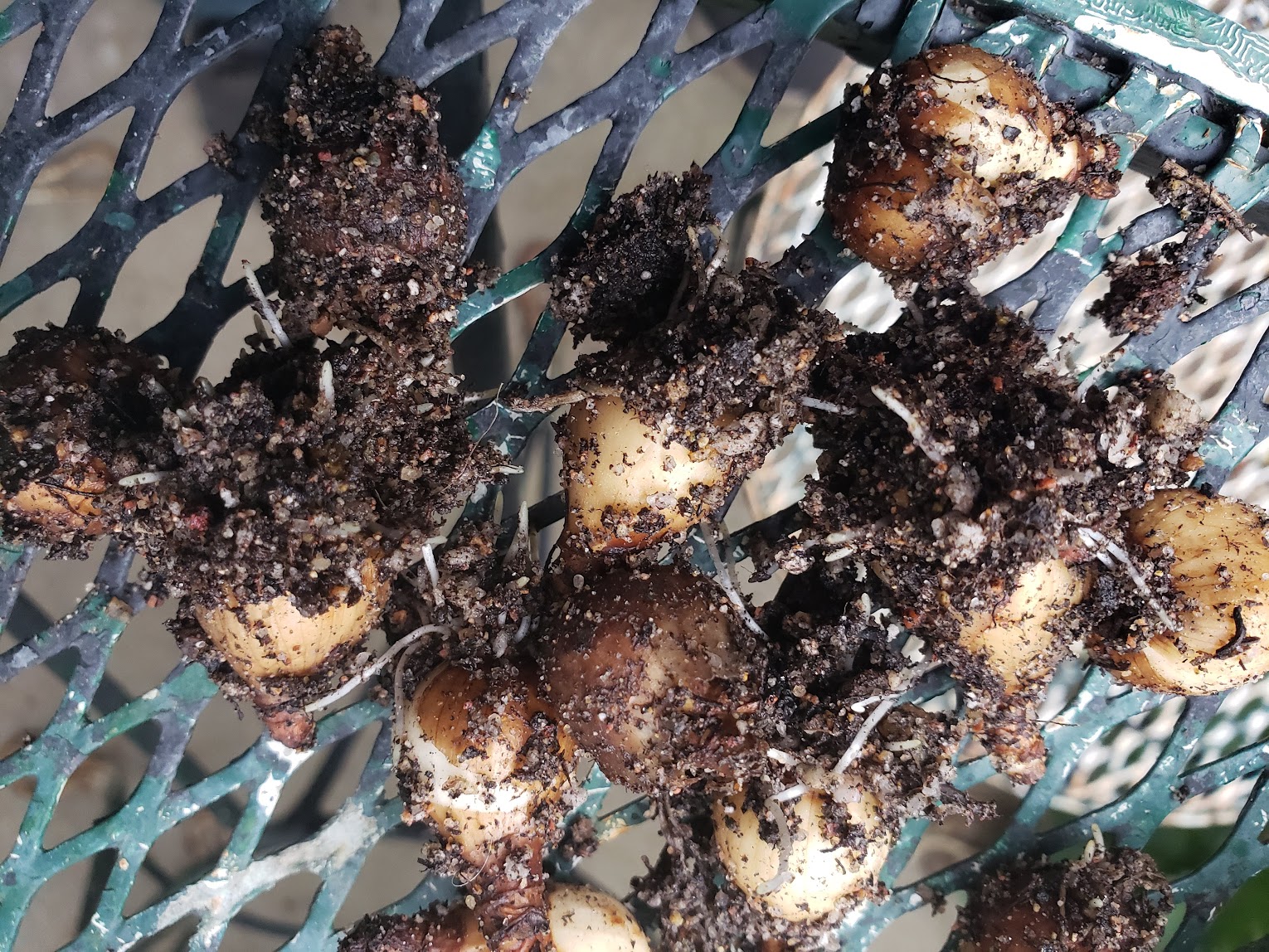 You’re welcome. The guy I live with says if they’re small and have roots then they’re daughter corms, and not to expect big green leaves next spring. Daughter corms on their way to becoming mother corms.