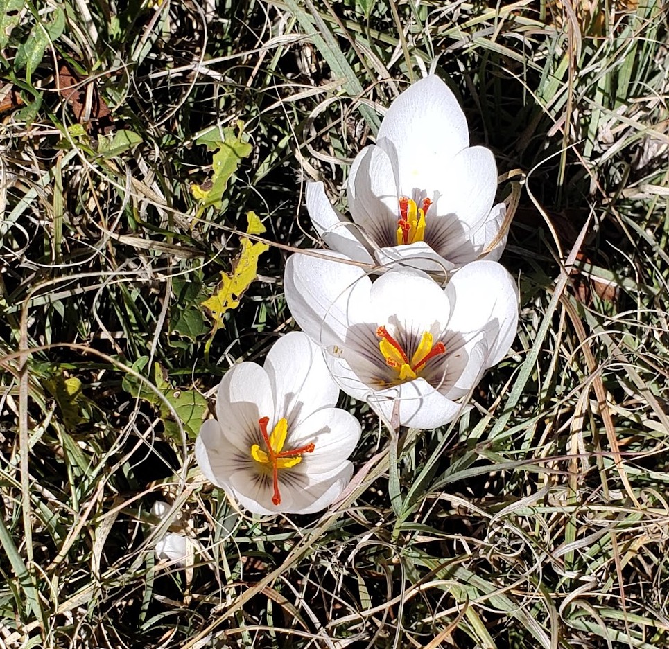 Then there are the synanthous crocuses. The problem with these is that rabbits like to mow down the overwintering leaves, so the crocuses have to have cages around them all winter.