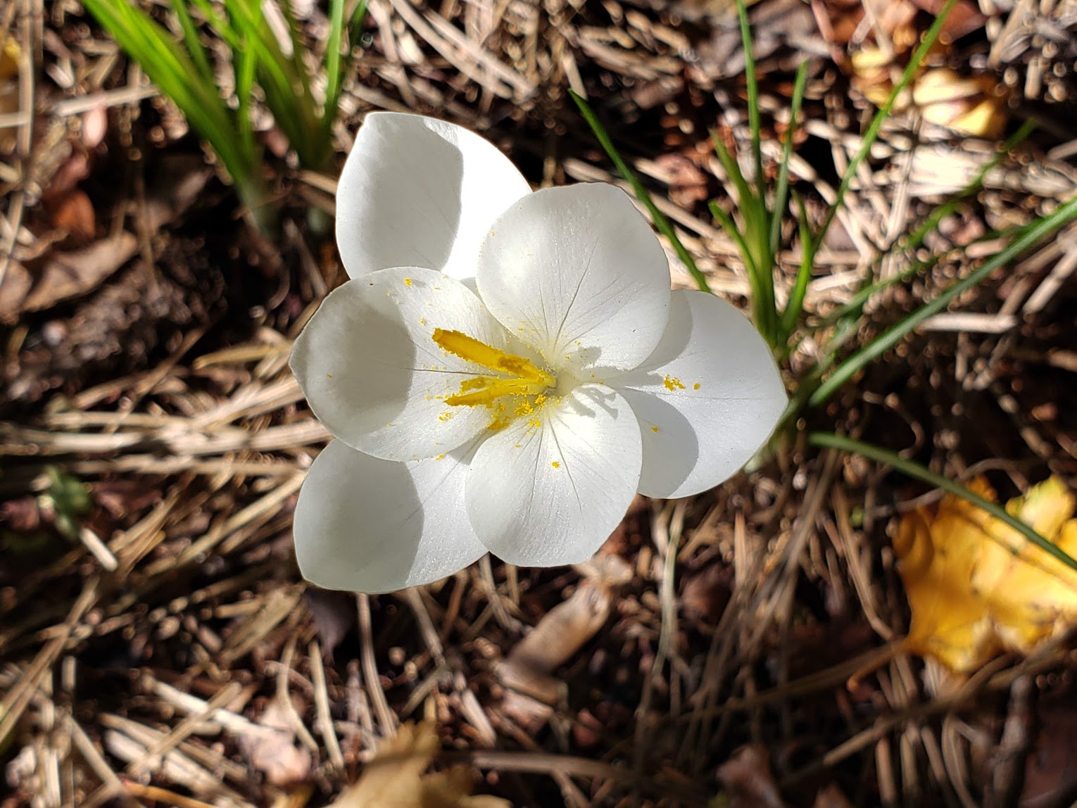 Here is Crocus niveus again. This is native to the Mani Peninsula in Greece. I know it’s really difficult to believe that the place isn’t named for me, but my name is Sanskrit and has nothing to do with Greek peninsulas. Or crocuses.