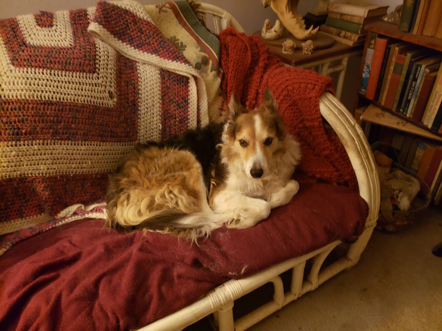 The guy I live with said all the purebred border collies have loved this ninety-year-old creaky couch. He sometimes takes an afternoon nap on this couch when it’s not occupied.