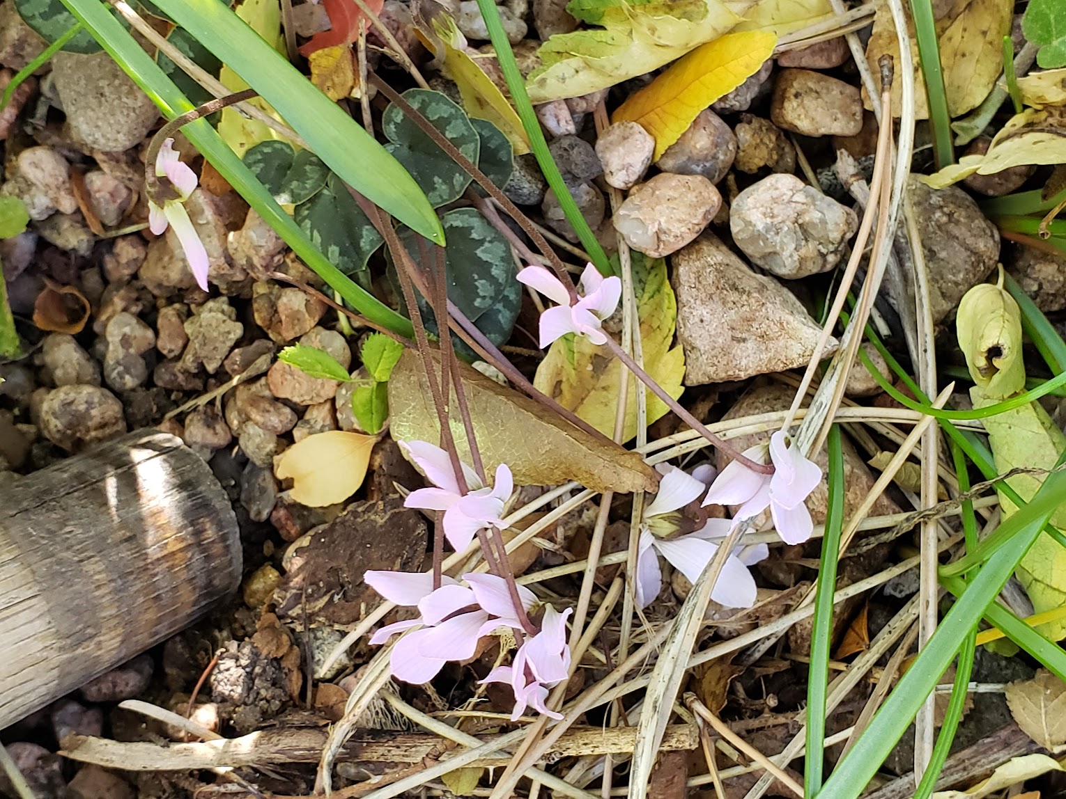 This is the fairly tiny Cyclamen intaminatum. That’s the tip of the guy I live with’s cane to show how small this cyclamen is.