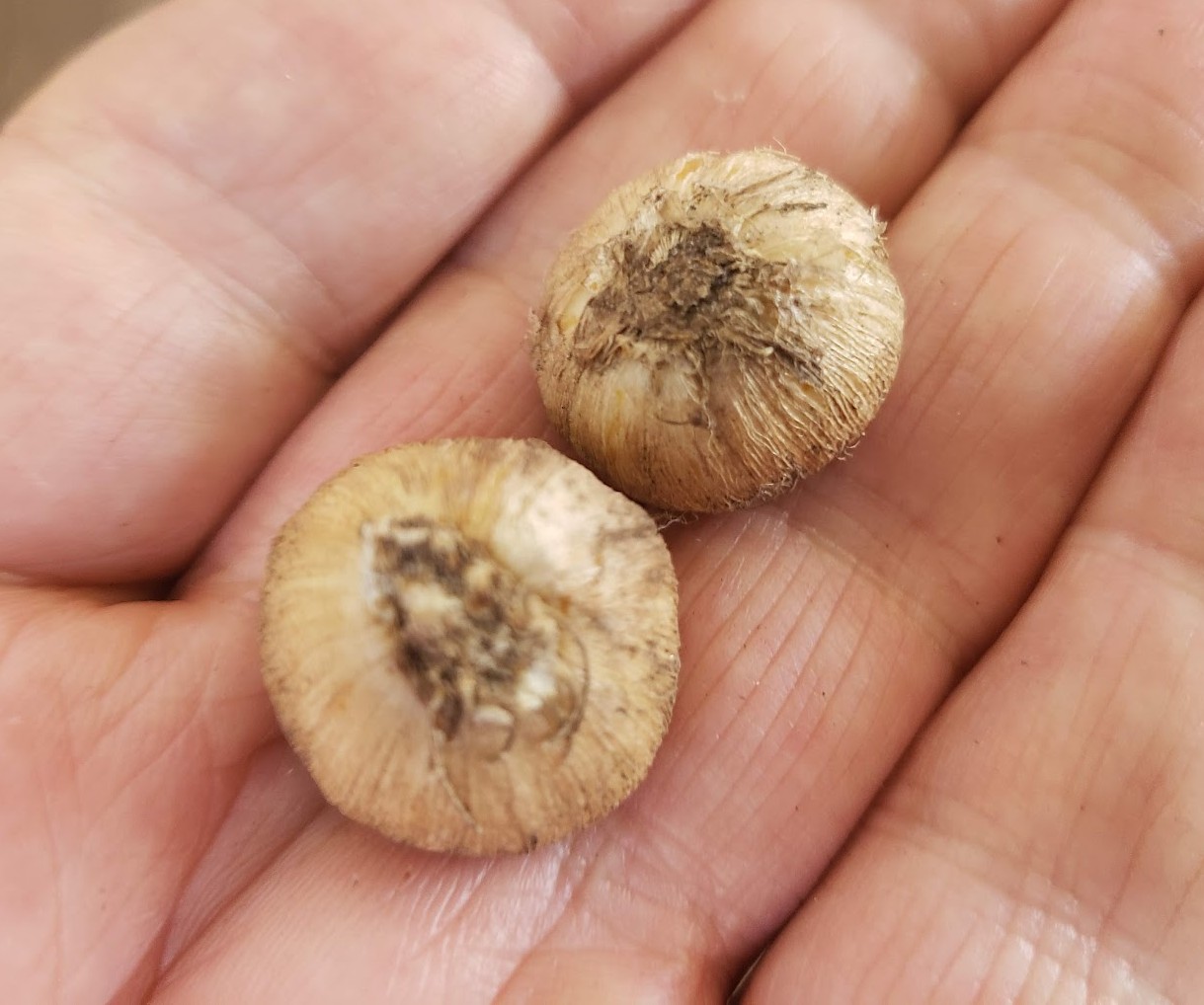 He got some bulbs of Brodiaea (or Triteleia) ‘Rudy’, and they were not super easy to tell which side was up, without looking very closely.