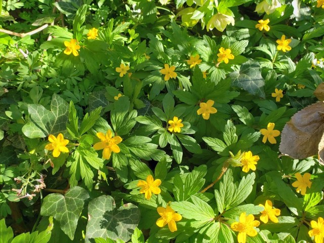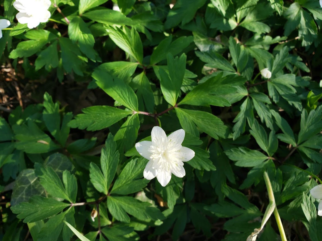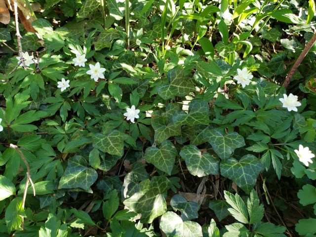 A bunch of epimediums and some anemones. Anemone nemorosa.