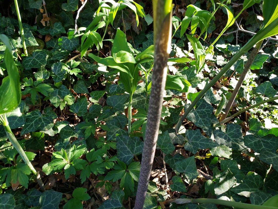 The guy I live with, who, like me, can be naughty sometimes, has planted a whole bunch of the dragon arum, Dracunculus vulgaris, in the garden, in hopes that the stench of the flowers will cancel out the stench of his neighbor’s laundry. It’s not likely because the latter smell is overpowering to the extent that it often makes him sick, but he says it’s funny to imagine a whole bunch of plants reeking of rotting flesh.