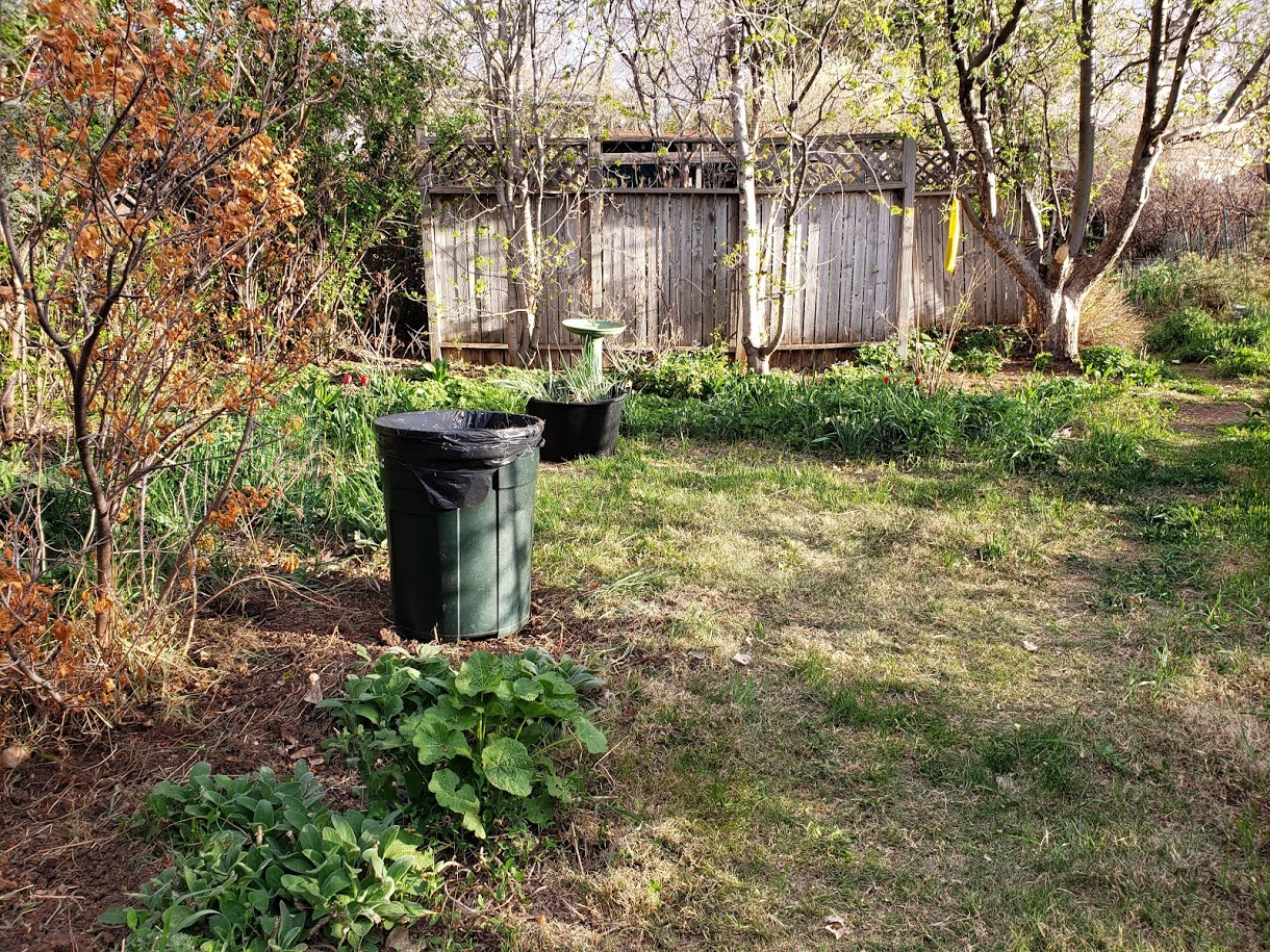 I was helping the guy I live with today. He was working out in the “way back” digging out some of the smooth brome (just to my left, there), to make that part of the garden look less awful. It’s a huge amount of work because the grass has roots that go everywhere. Everywhere except down.