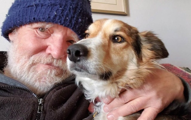 I was joining in with a few other dogs this morning, barking, and the guy I live with came out to investigate. By now he’s figured out which kind of bark means what, so he brought the little camera along.