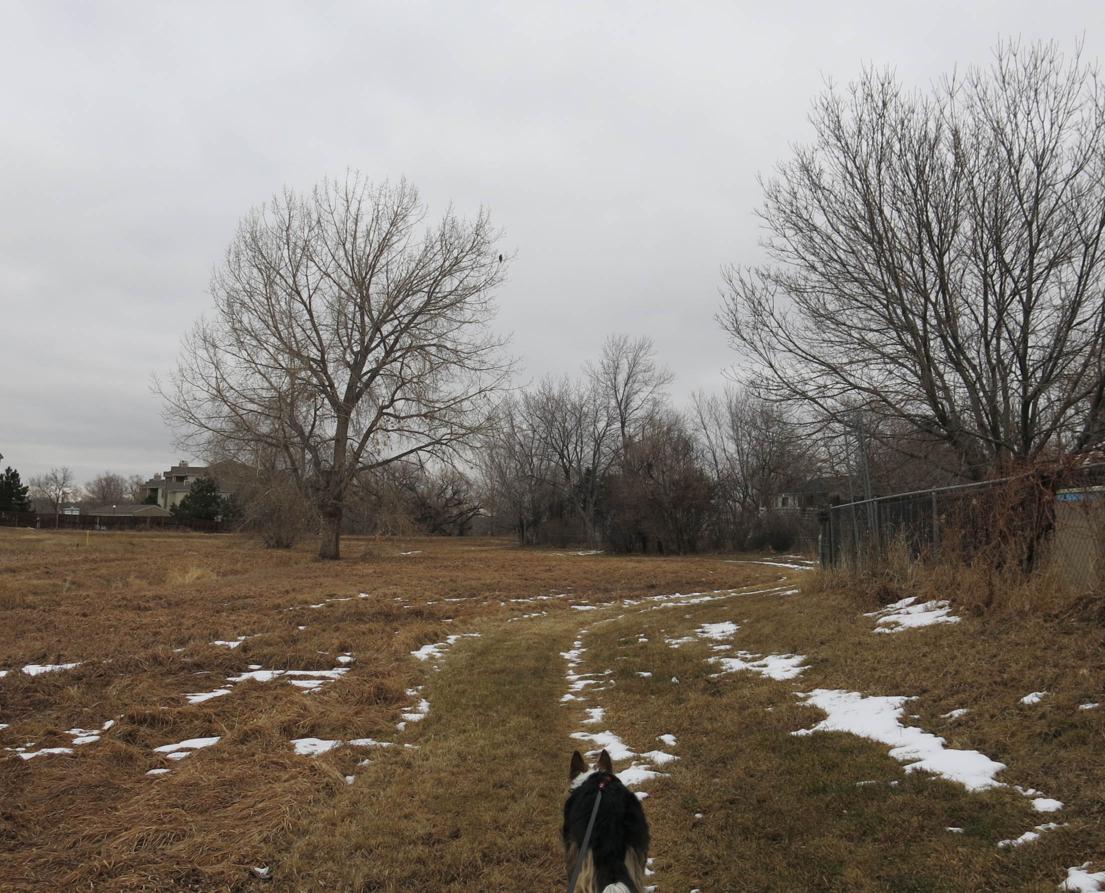 There was a big hawk in the cottonwood, as usual. Almost in the center of the picture.