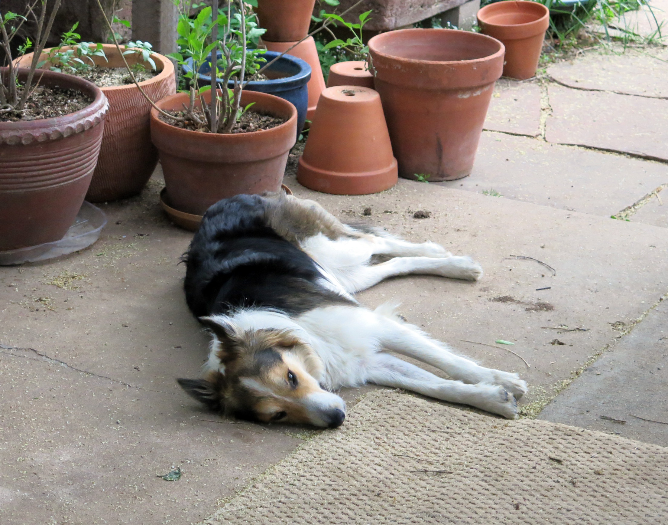 Greetings and salutations, everyone; yes, once again it is I, Mani the fairly regular-sized, but I like to think cuddlably small, purebred border collie, filling in for the guy I live with, and here to bring you some very mysterious news from our garden. You may remember me from such posts as “The Upended Breakfast”, among so many, many others.